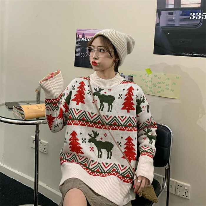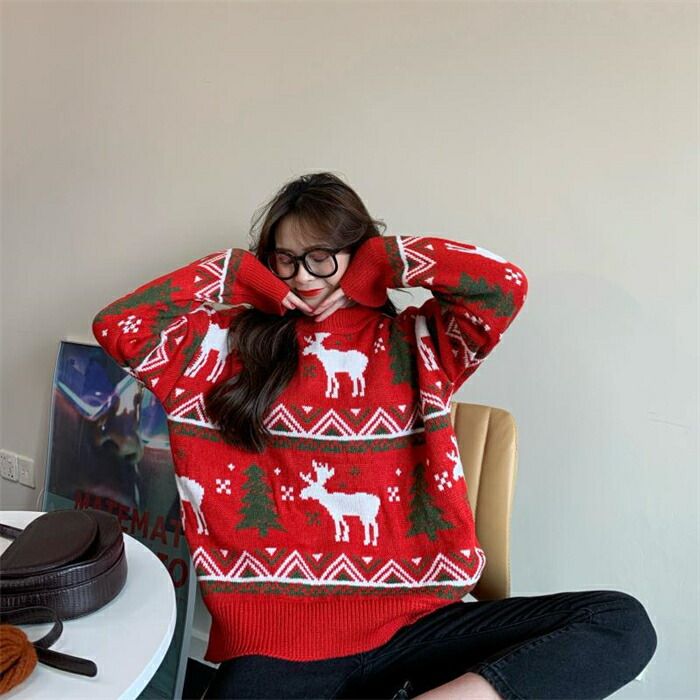クリスマスセーター Merry Chr レディースファッション 早い者勝ち レッド オフホワイト