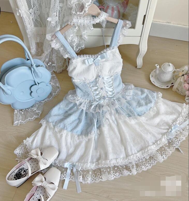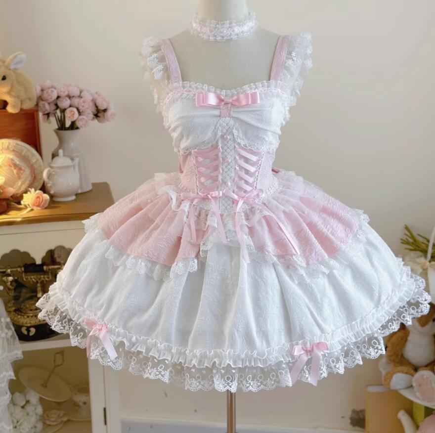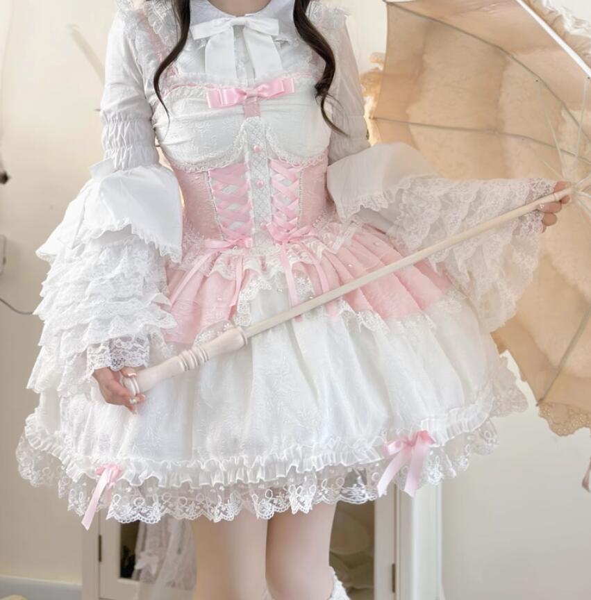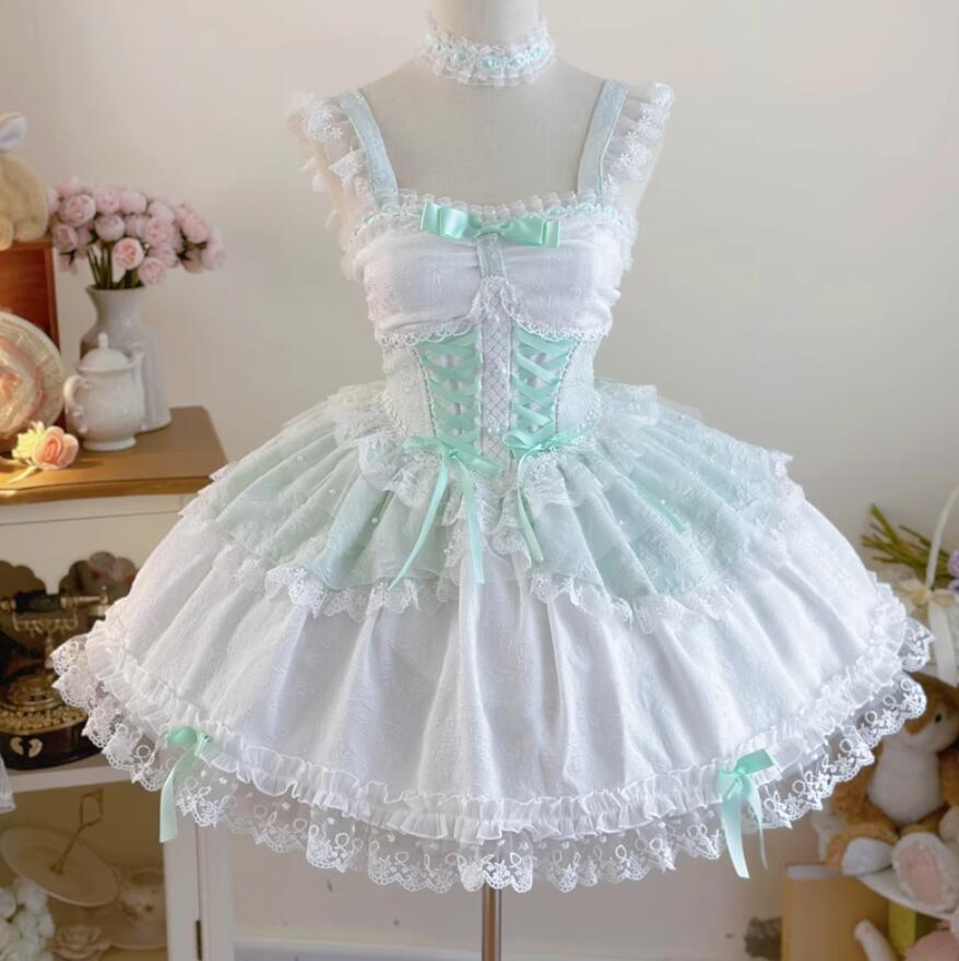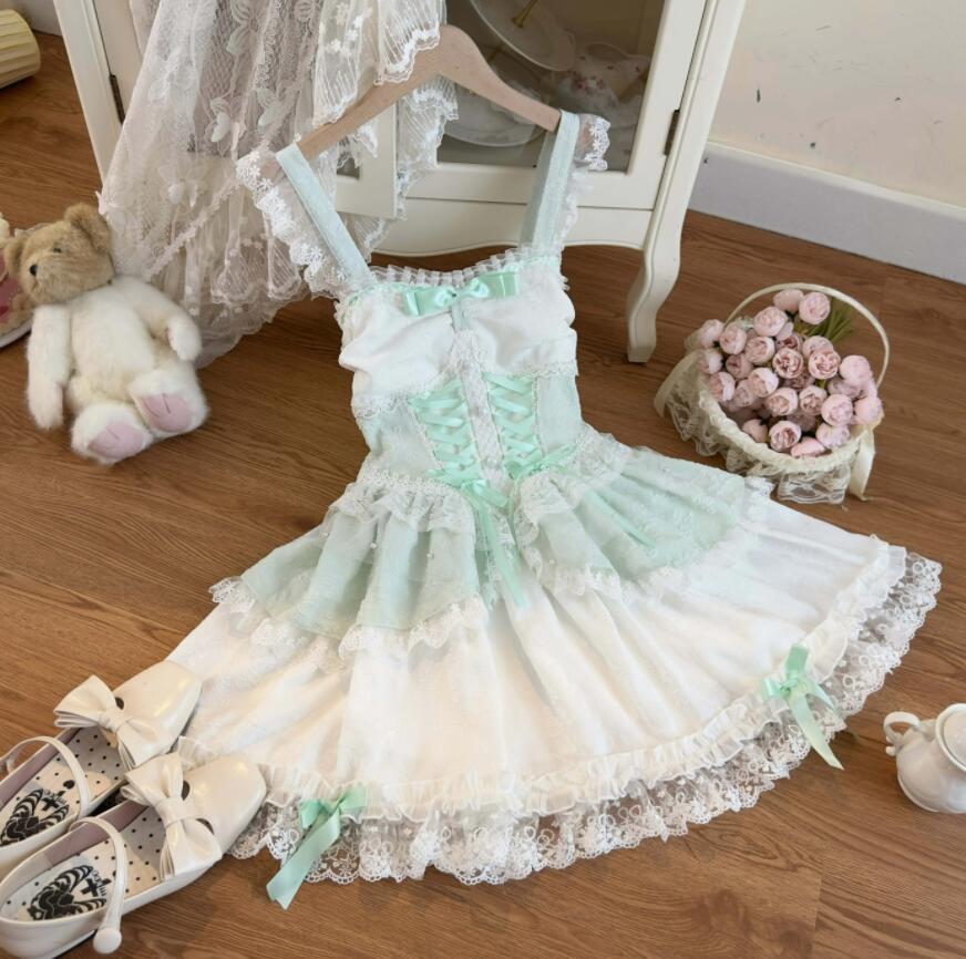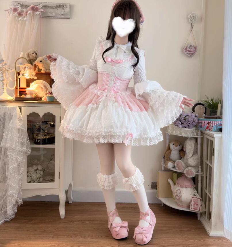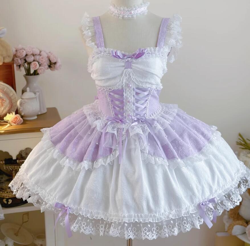 新発 Lolita系 メイド服 ワンピ ワンピース 新登場! S M L ピンク グリーン パープル ホワイト ブラック ベージュ ブルー