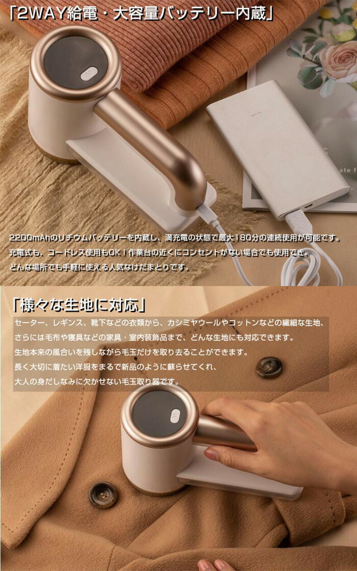 毛玉取り 電動 コンセント 毛玉取り器 充電 コードレス 6枚刃 USB 強力 軽量 コンパクト 生地を傷めない 毛玉カッター 安全機能付き 毛玉取り機