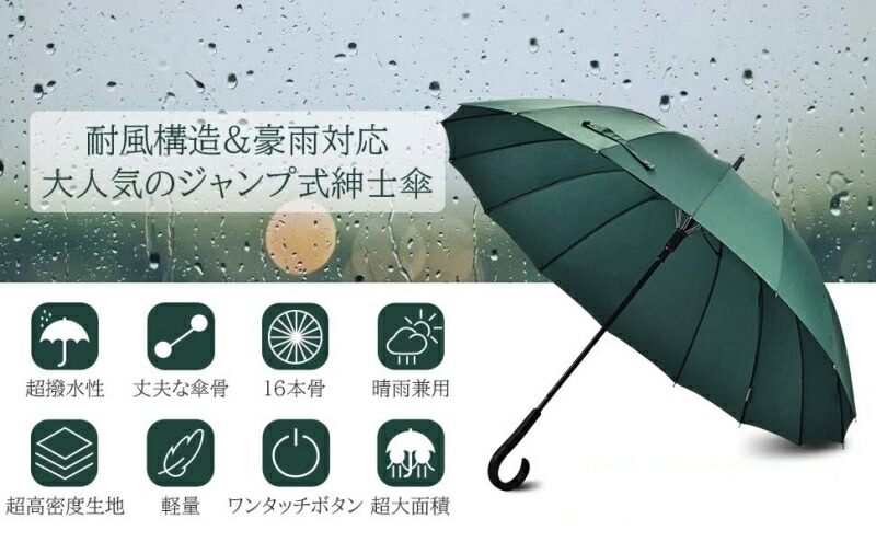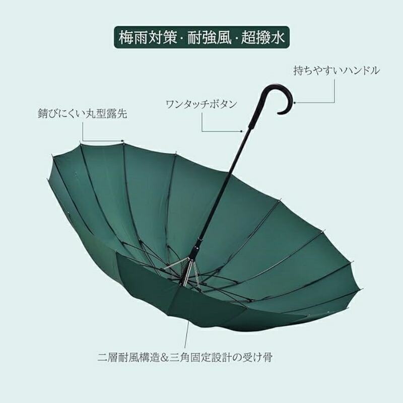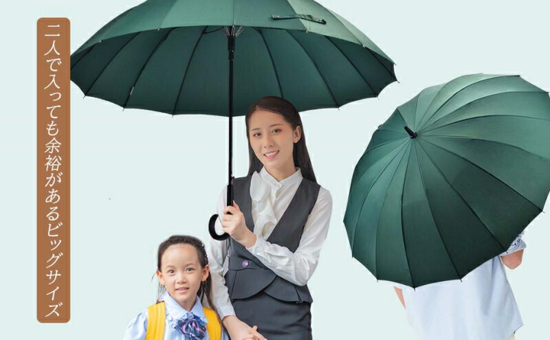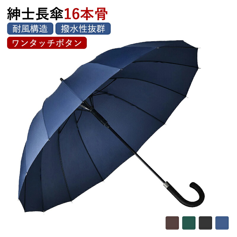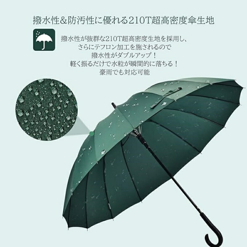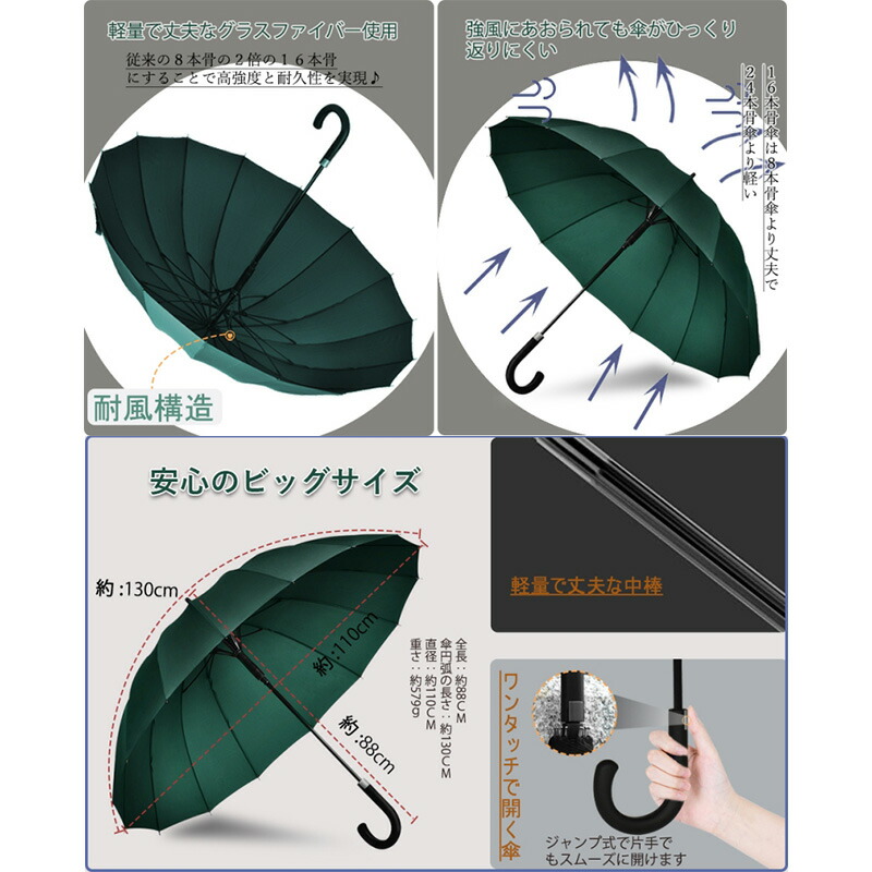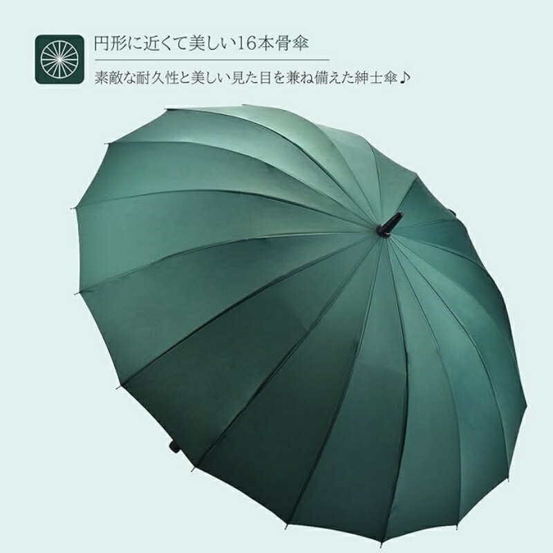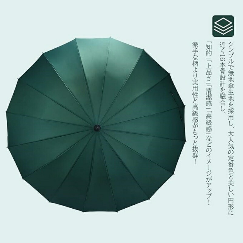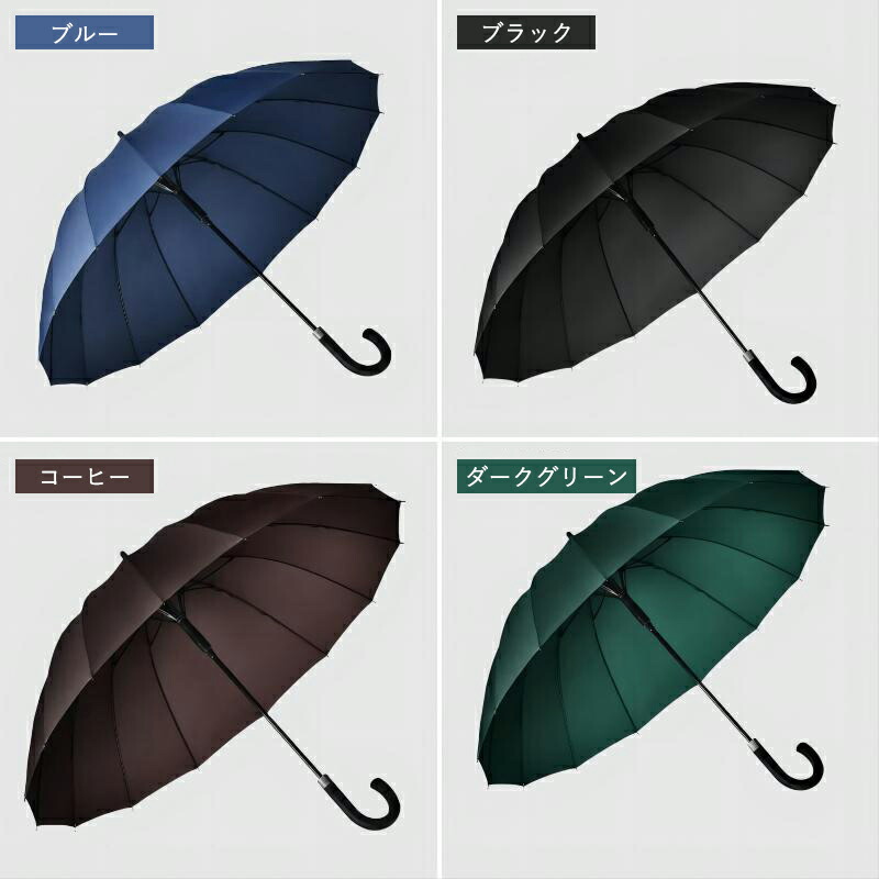 多骨長雨傘 長傘 16本骨 傘 かさ 傘 男女兼用雨傘 続々登場 ブラック コーヒー ダークグリーン