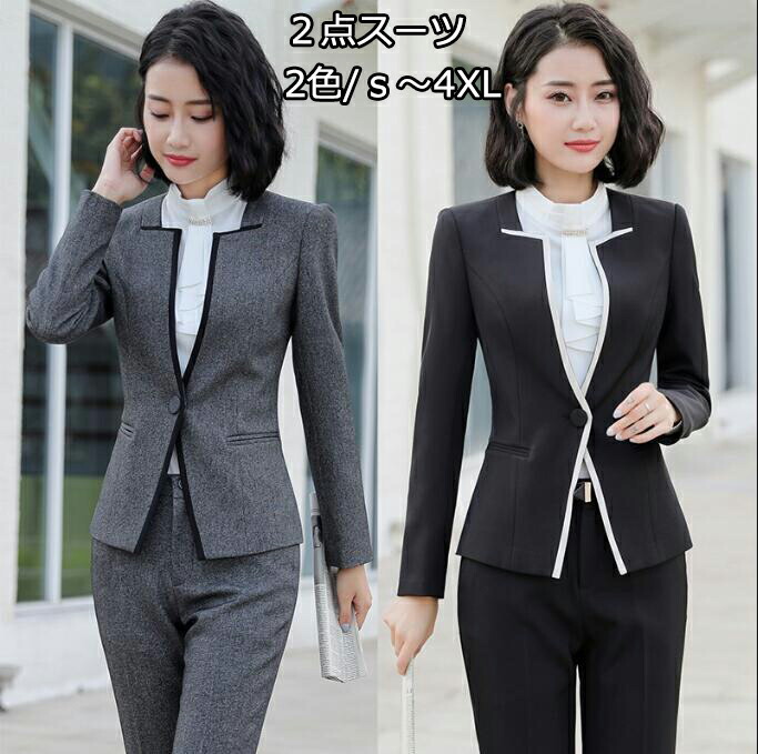 2色 無地 2点セット 襟無し ジャケ スーツ セットアップ 3 4点セット 早い者勝ち!ポイントUP S M L XL 2XL 3XL 4XL ブラックパンツセット ブラックスカートセット 灰色パンツセット 灰色スカートセット
