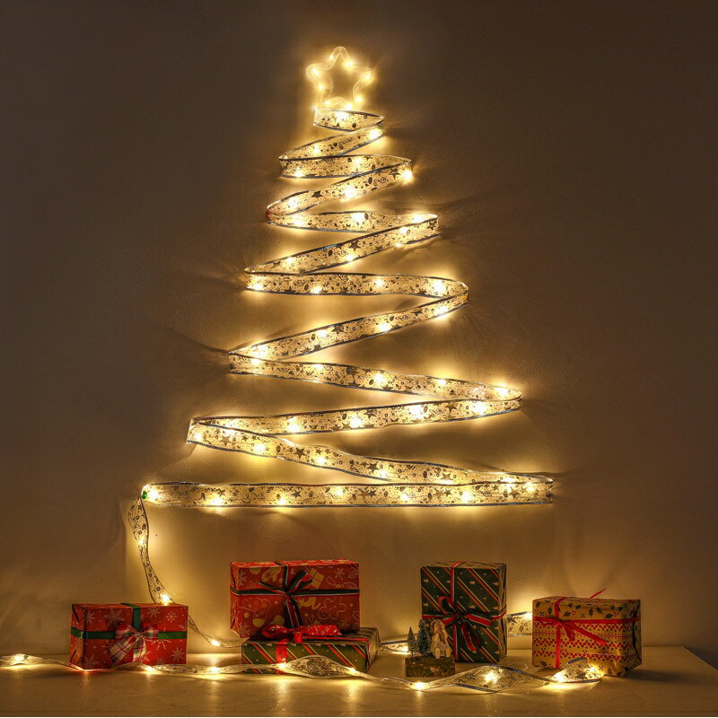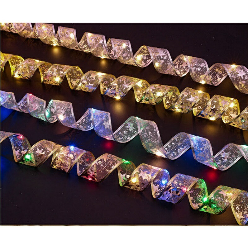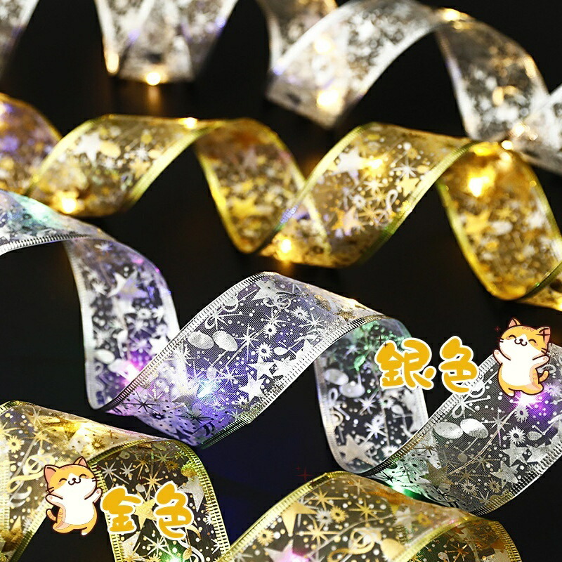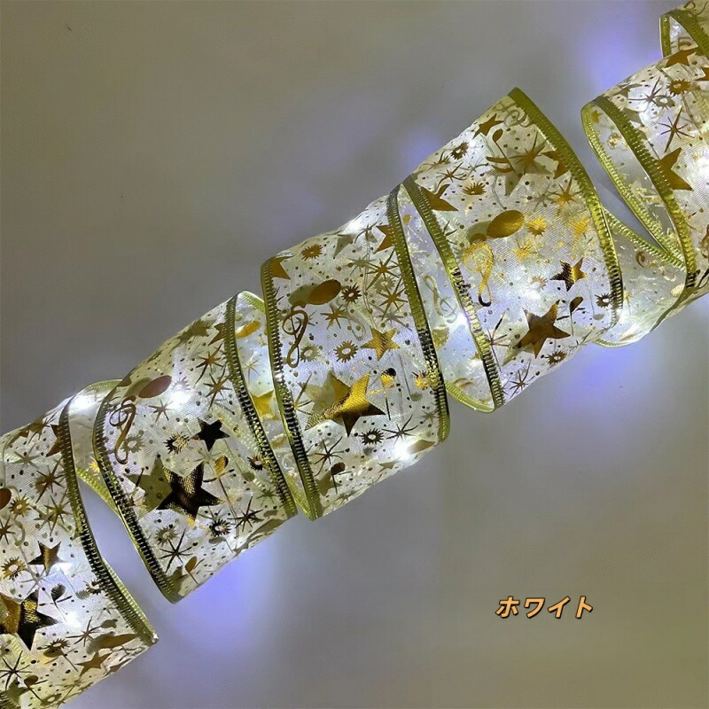 イルミネーション ライト リボン クリ 金色 銀色 シャンパンゴールド マルチカラー ホワイト