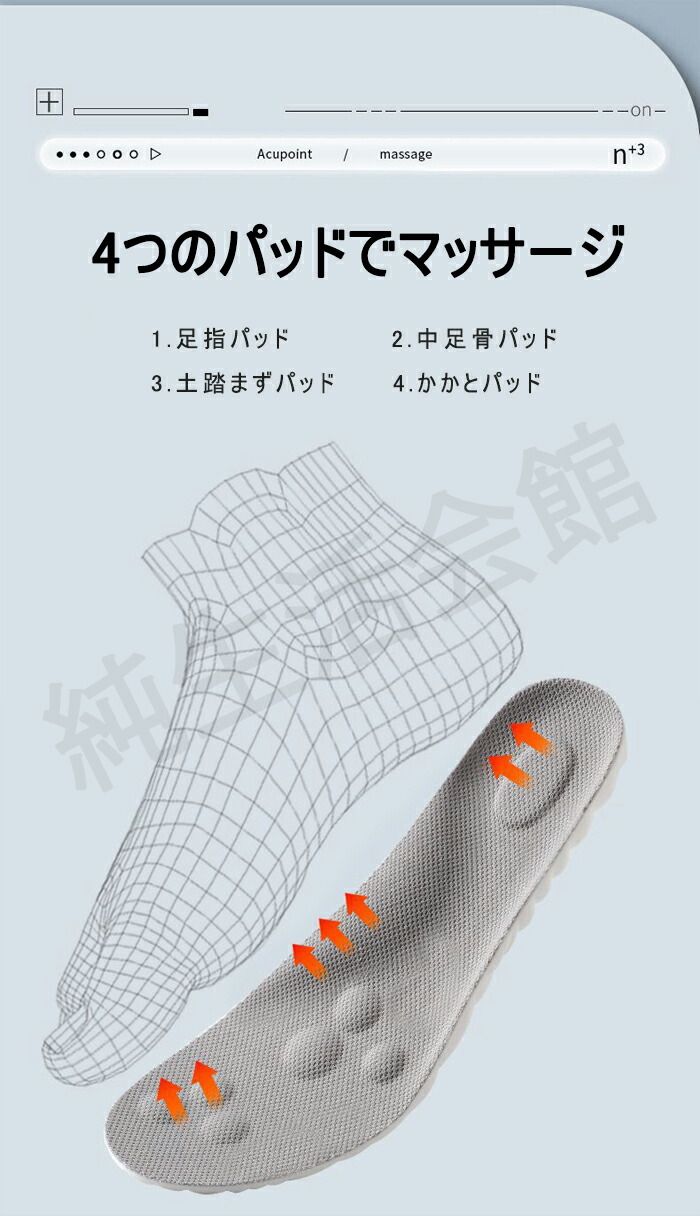 2足セットインソール 4D 中敷き 衝 靴 特集 グレー ブラック オレンジ 35-36 37-38 39-40 41-42 43-44