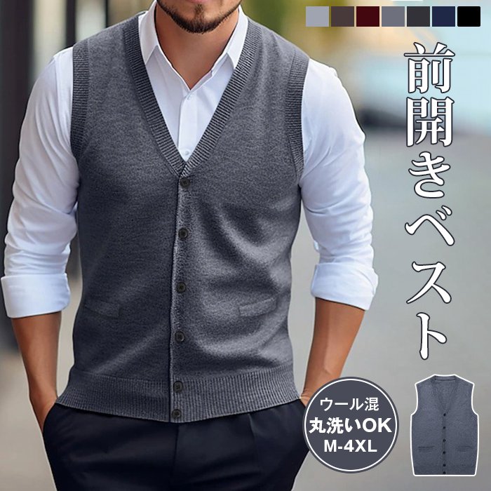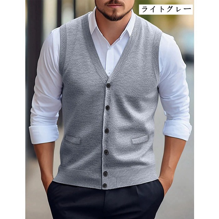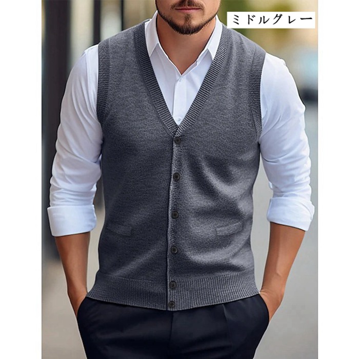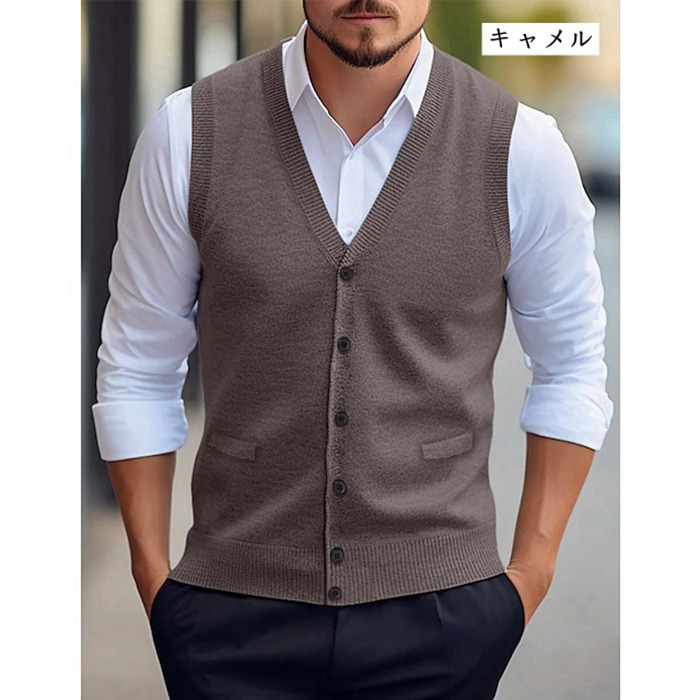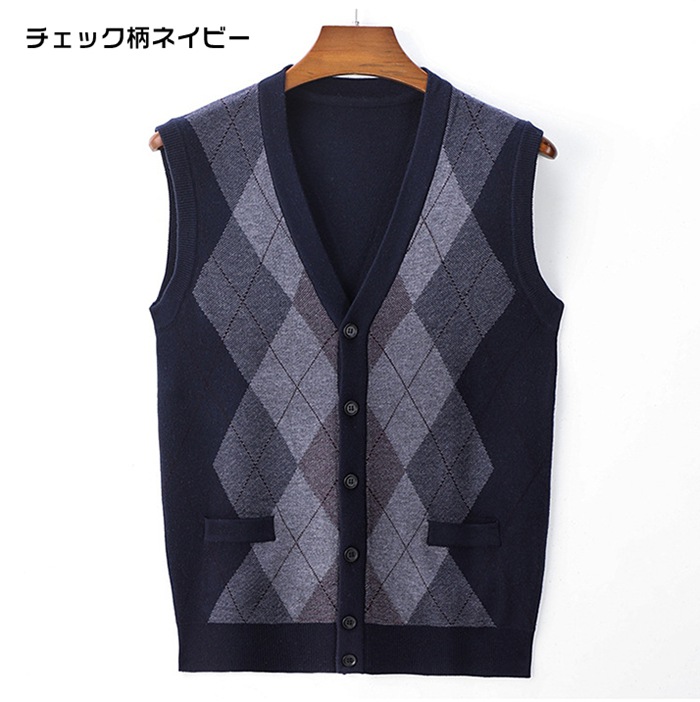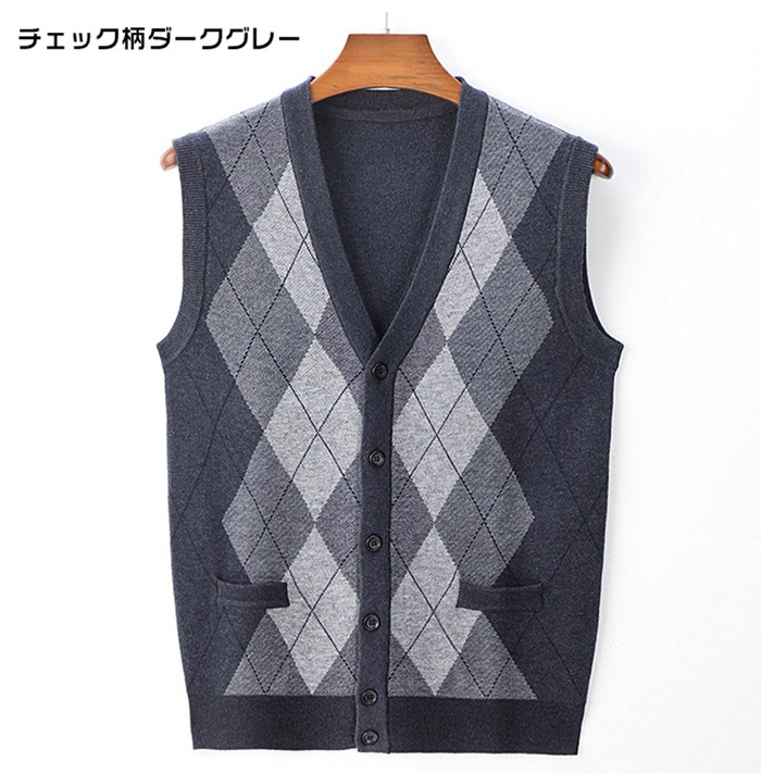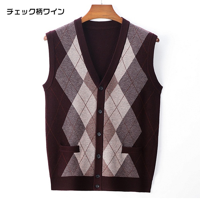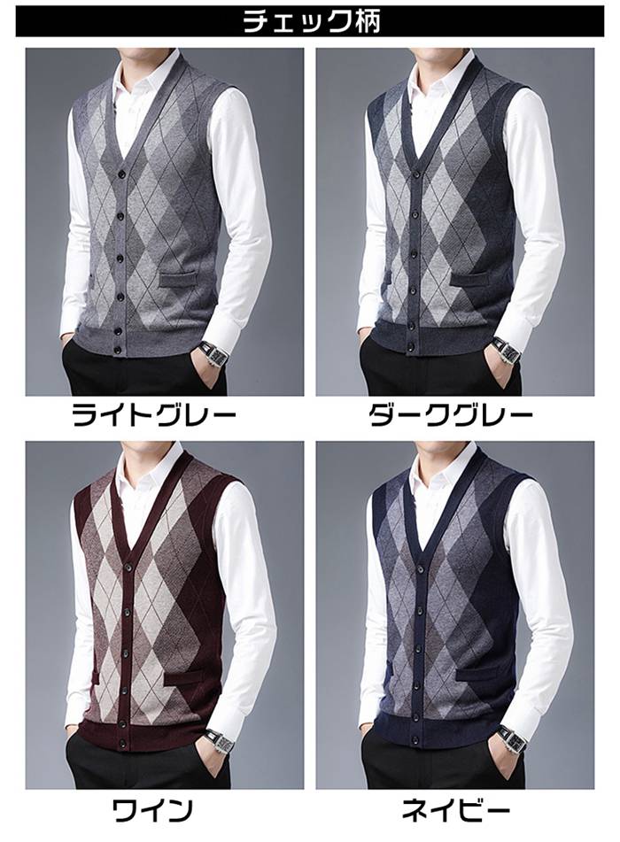 ニットベスト Vネック メンズニット トップス ベスト ジレ 豊富 ネイビー ワイン ライトグレー ミドルグレー ダークグレー グリーン キャメル チェック柄ライトグレー チェック柄ダークグレー チェック柄ワイン チェック柄ネイビー M L XL 2XL 3XL 4XL