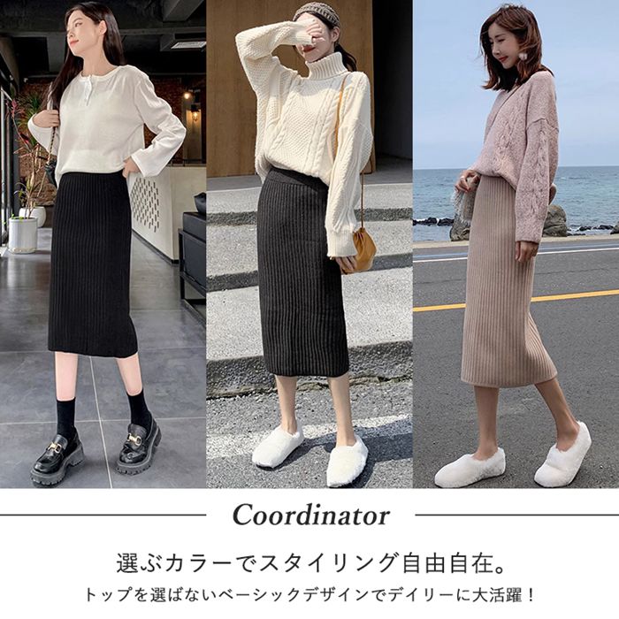 ニットスカート タイト レディース タ ボトムス スカート 人気 ブラック コーヒー色 ダークグレー 杏色 Aホワイト Aブラック Aグレー Aカラメル Aコーヒー ショート丈 ロング丈 F