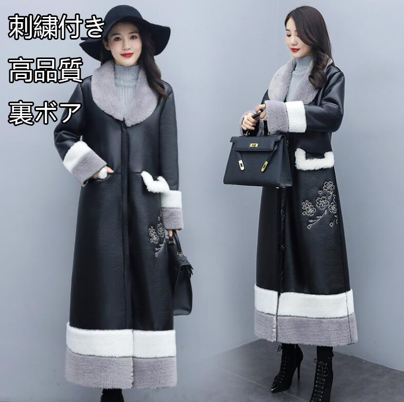 高品質 2色 裏ボア 刺繍付き ムート レディースファッション 豊富な品揃え M L XL 2XL 黒 黒刺繍付き