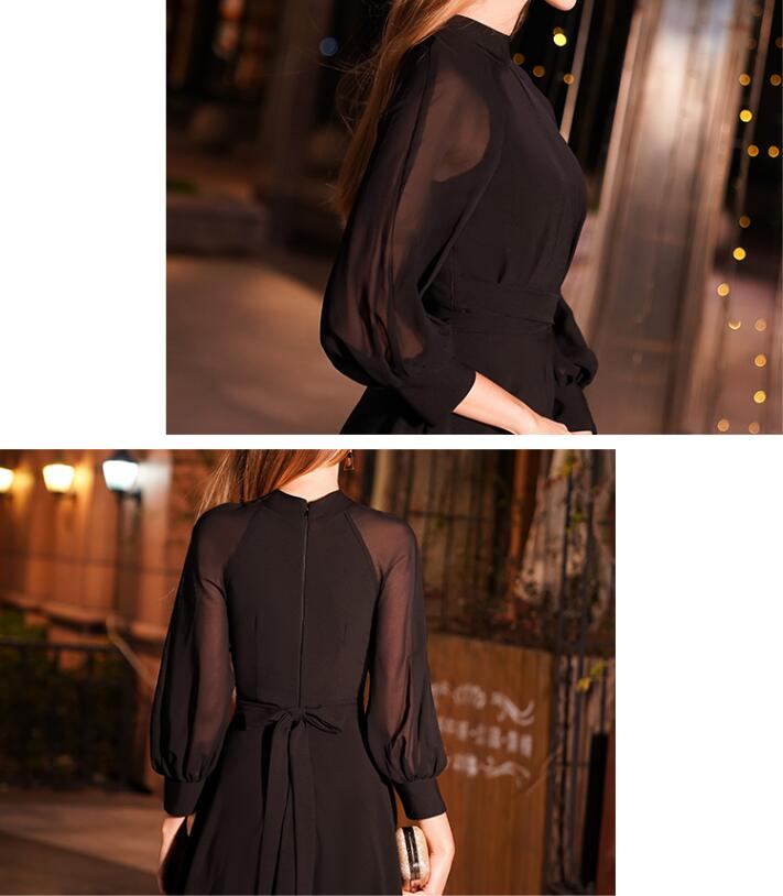 シースルーの袖と首元のカットが上品に素肌を感じさせて、ブラックの重さを払拭。
