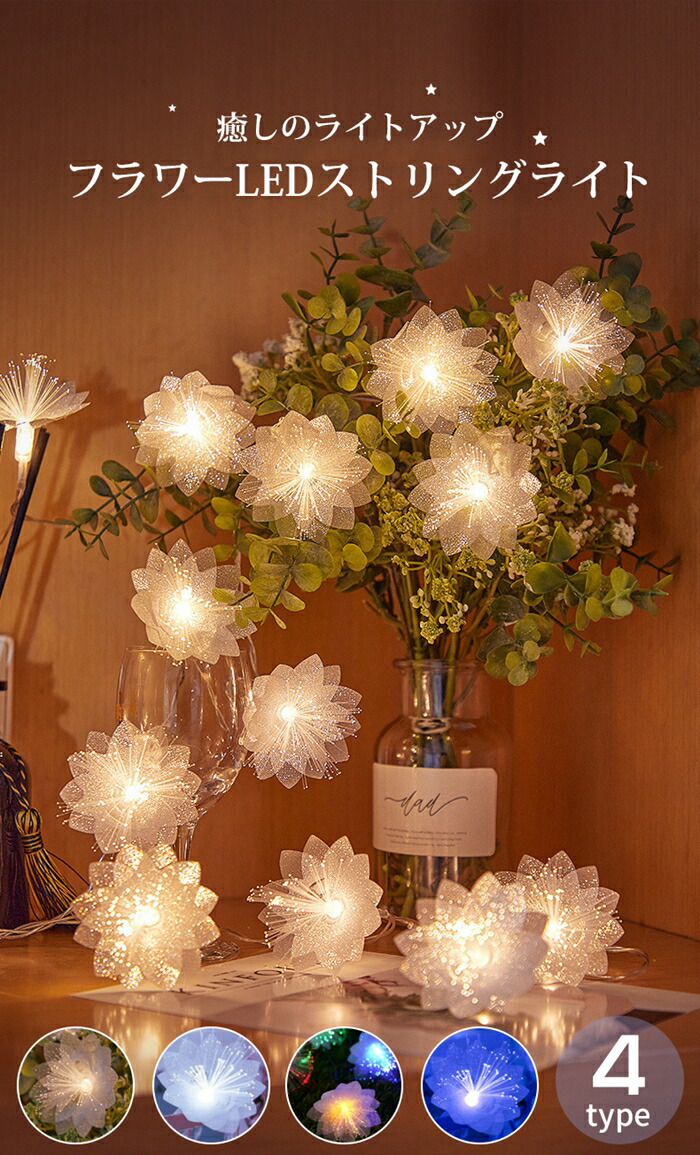 LED 花 イルミネーションライト ク 暖色 白光 カラフル 青い光