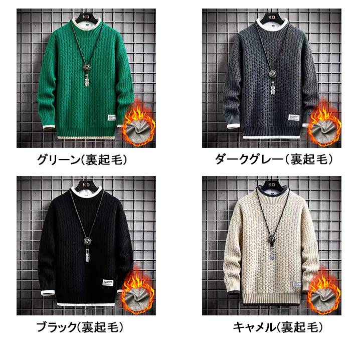 セーター クールネック 裏起毛 厚手 トップス ニット セーター 早い者勝ち グレー キャメル ブラック グリーン グレー(裏起毛) キャメル(裏起毛) ブラック(裏起毛) グリーン(裏起毛) L XL XXL XXXL