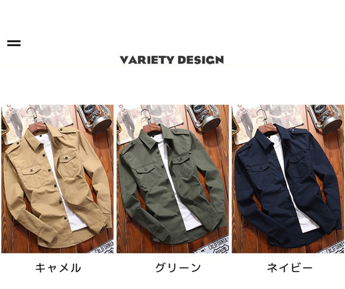 ミリタリーシャツ メンズ シャツ 長袖 メンズファッション 続々入荷中 ネイビー グリーン キャメル L XL 2XL 3XL 4XL 5XL