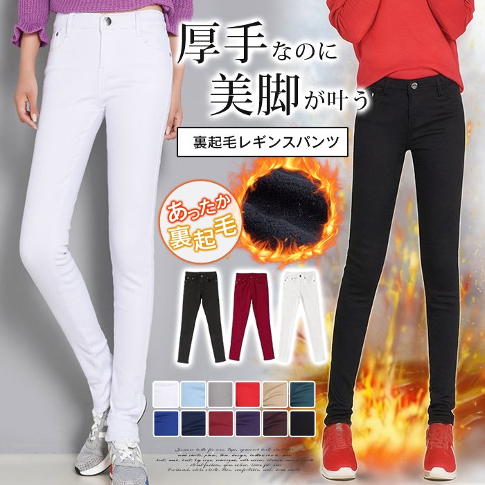 パンツ 裏起毛 スキニー 裏起毛パンツ レディースファッション 超目玉商品 ホワイト ブラック ワイン グリーン コーヒー色 ダークブルー レッド パープル ネイビー 25 26 27 28 29 30 31 32