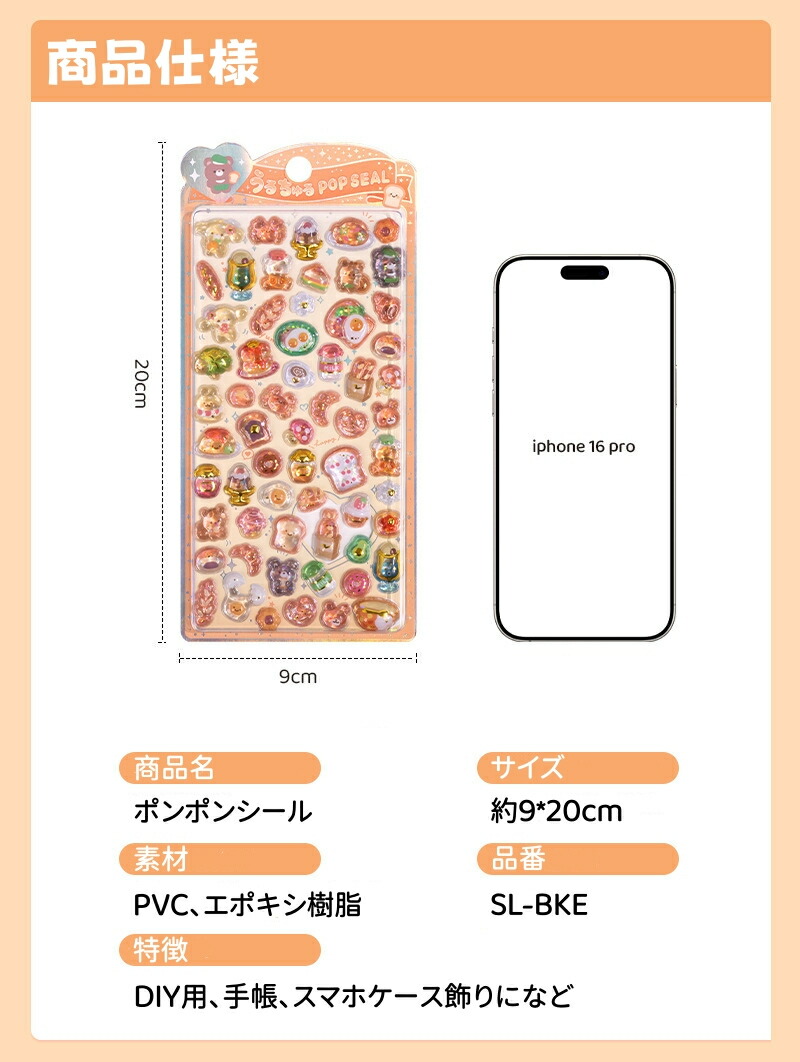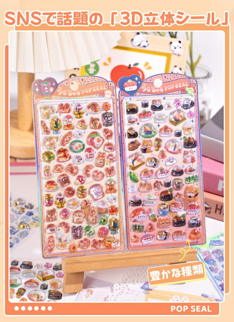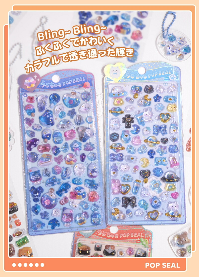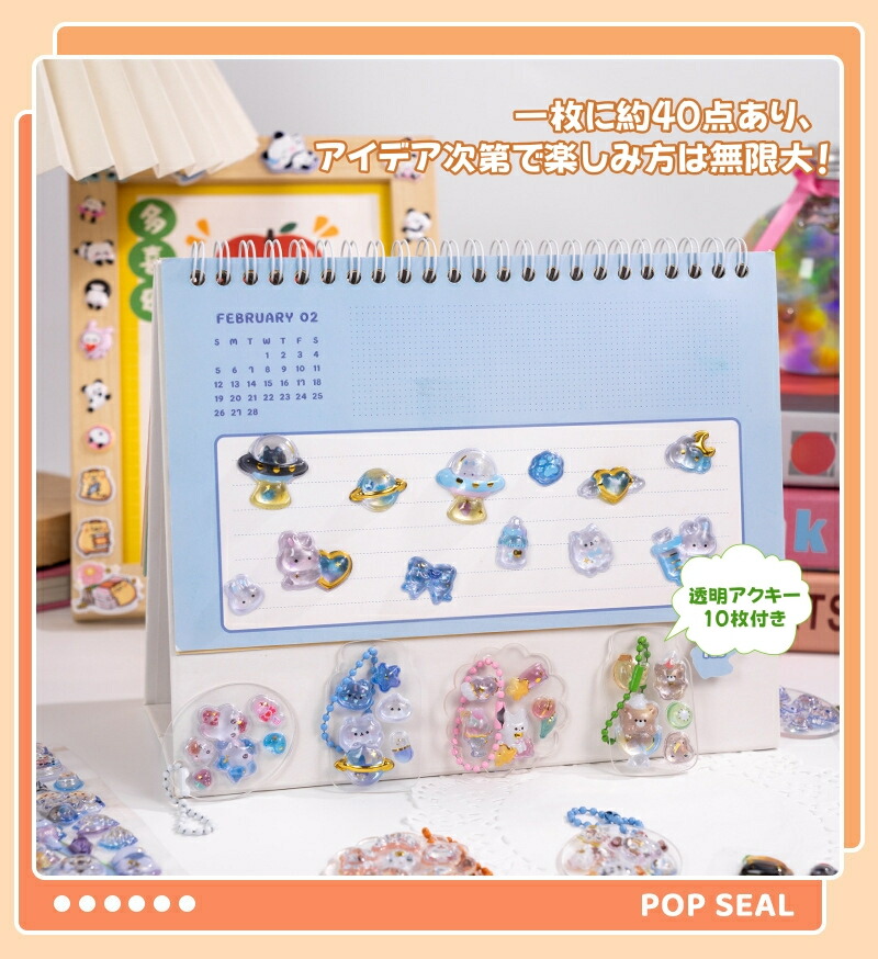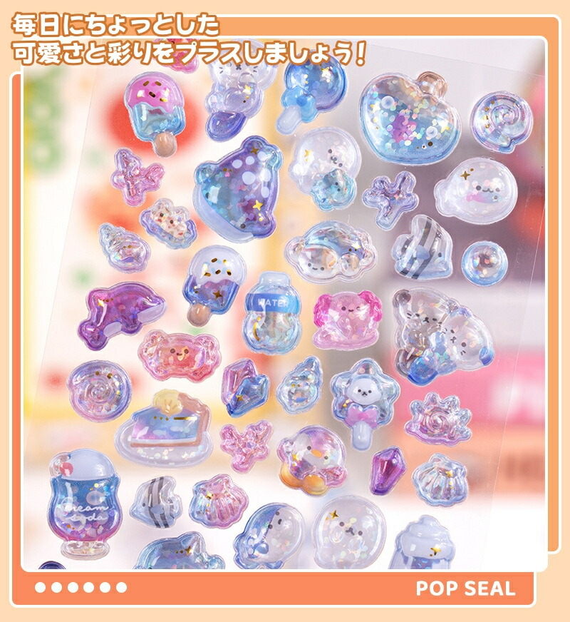 3D 立体シール ドロップシール ぷくぷくシール ぷっくりシール デコシール ボンボン おはじきシール ごほうびシール キラキラ かわいい 動物 女の子 DIY シール交換 シール帳 スマホケ 透明