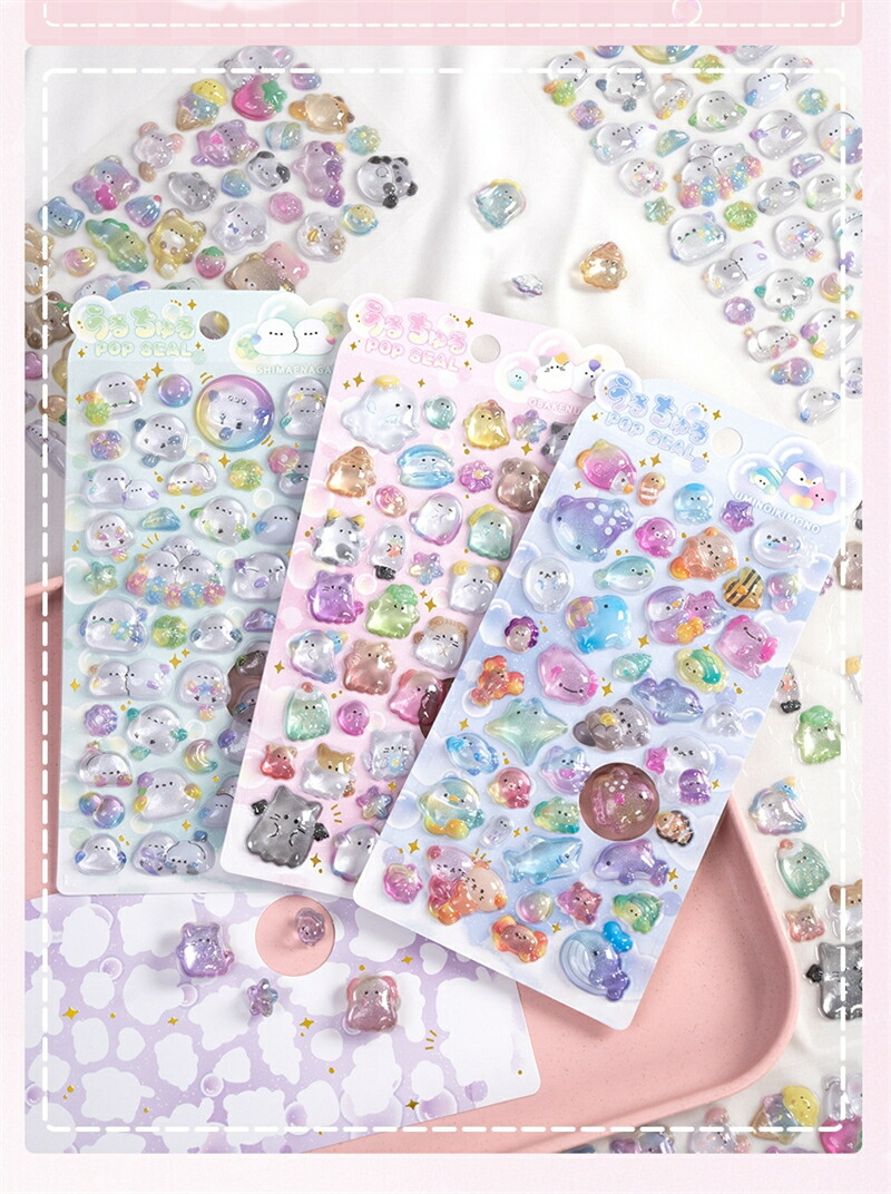 3dシール 立体シール 可愛い ぷくぷく ぷっくりシール ボンボンドロップ ジュエル風 立体 ふわふわ質感泡ステッカー ステッカー 手帳用 貼り付け可能 女の子 かわいい 可愛 手帳 3D