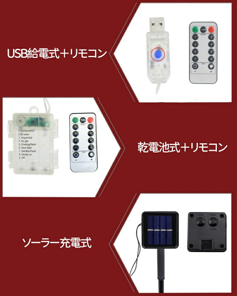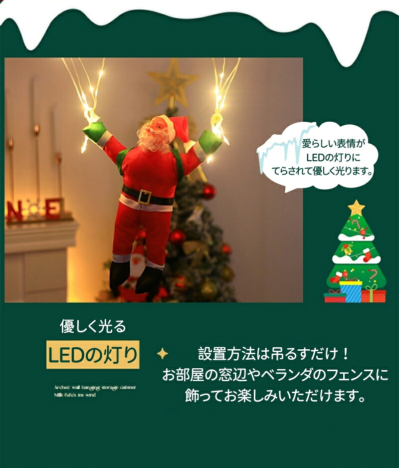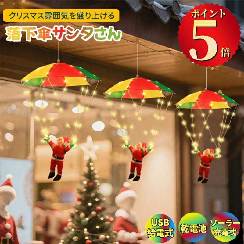 ソーラー イルミネーション 落下傘サンタさん クリスマス飾り サンタクロース モチーフ ソーラー充電式 USB 全2色 乾電池式 リモコン付き 室内 屋外用 かわいい ロープライト 電飾 オ led