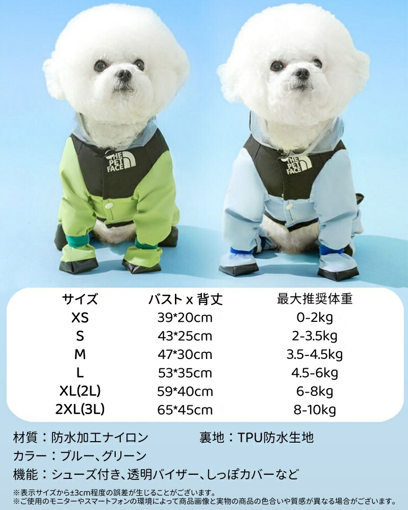 犬 レインコート ドッグウェア 犬用 犬用品 ドッグウェア レインコート 早い者勝ち ブルー グリーン XS S M L 2L 3L