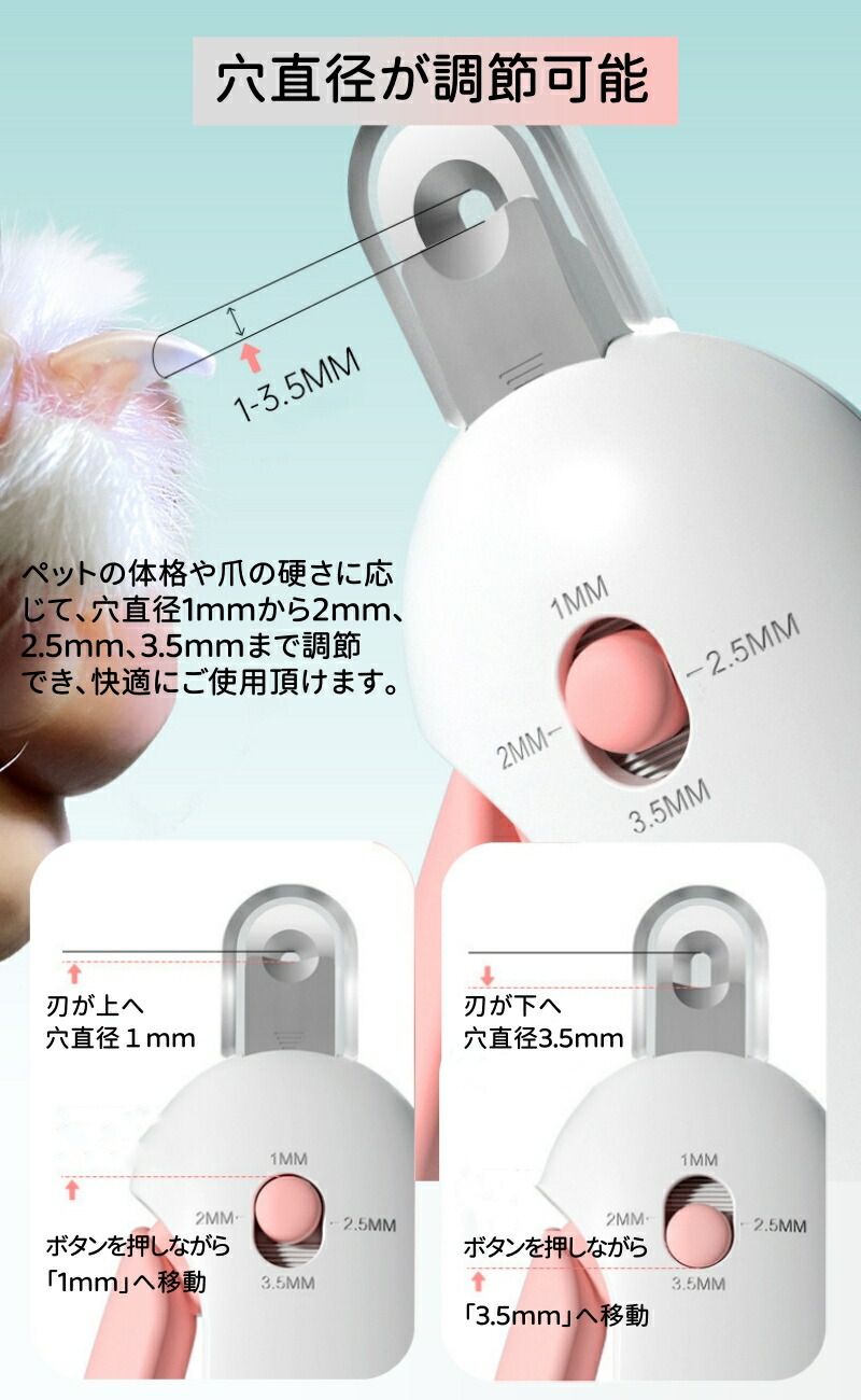 犬 猫 爪切り ネイルックカッター 穴 グリーン ピンク
