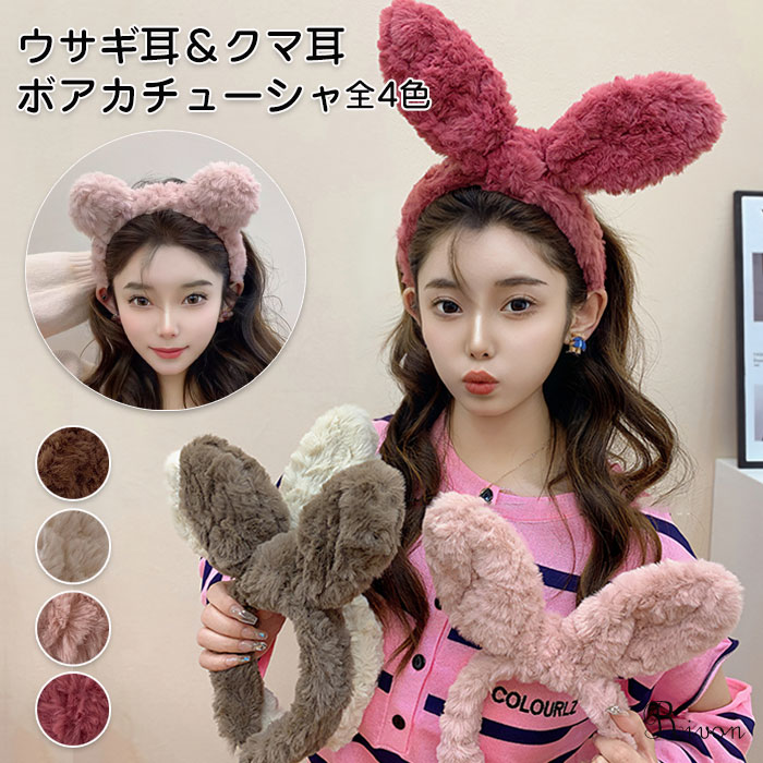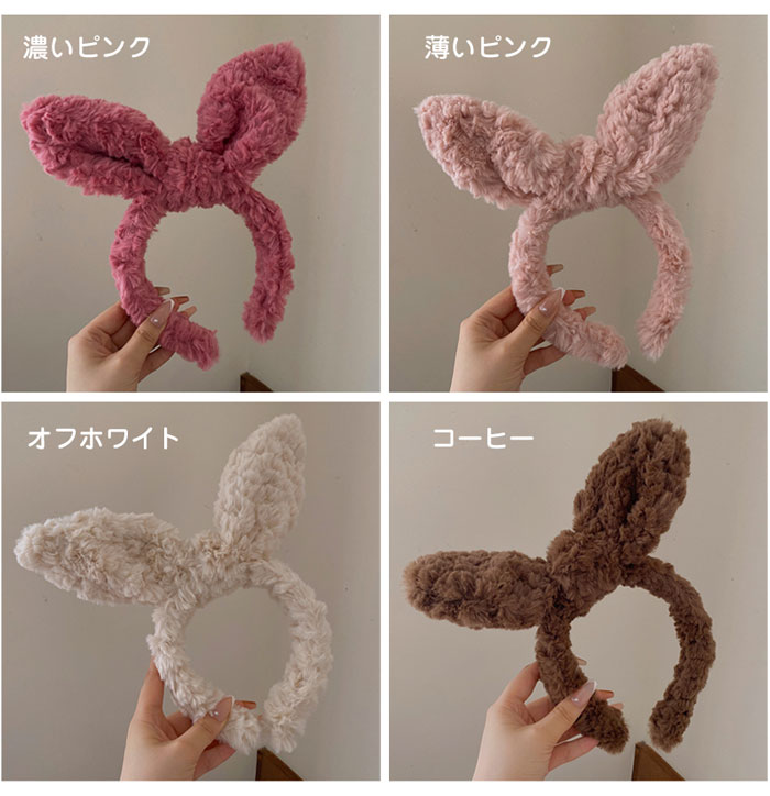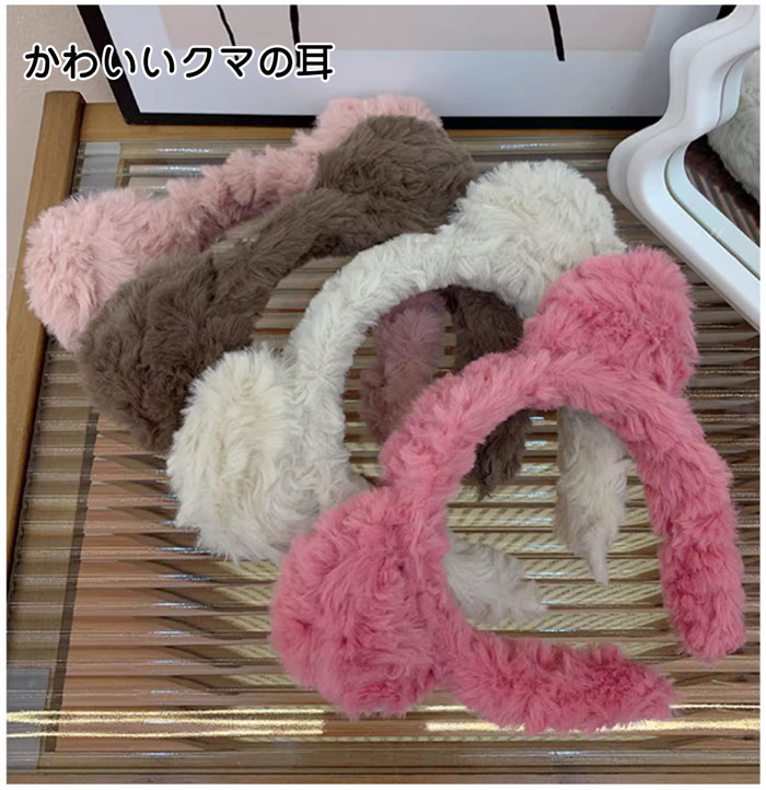 クマミミボアカチューシャ ウサギ耳 カ レディースジュエリー アクセサリー ヘアアクセサリー カチューシャ 超目玉商品 濃いピンク 薄いピンク オフホワイト コーヒー ウサギ耳 クマ耳