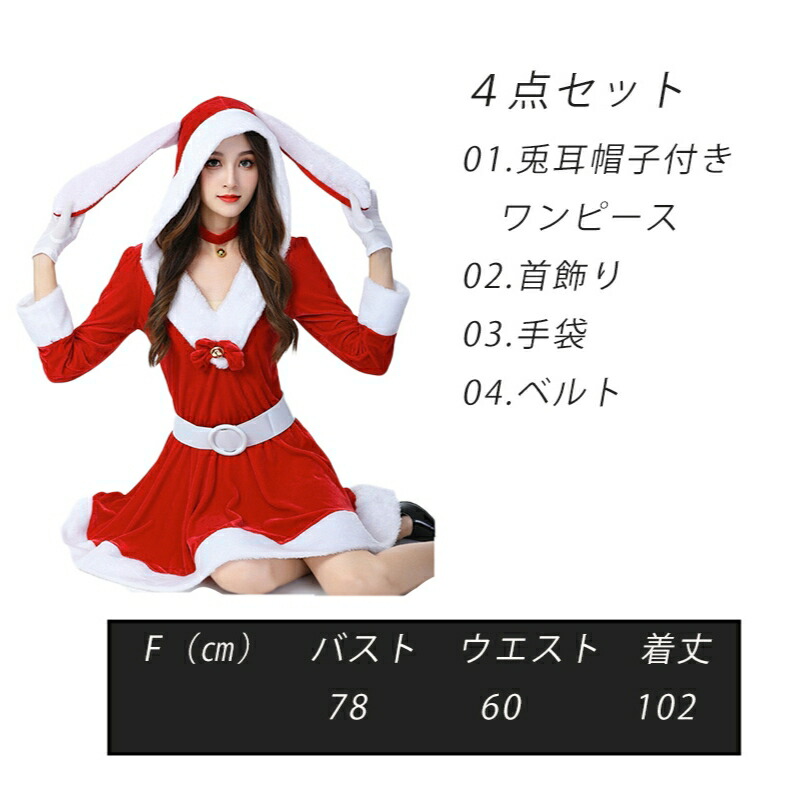 サンタ コスプレ サンタコスプレ レディース ポンチョ 大きいサイズ チエック ドレス コスチューム かわいい 赤 サンタコス 衣装 ミニワンピース 制服 メンズ 長袖 手袋 チョーカー うさぎ耳帽子