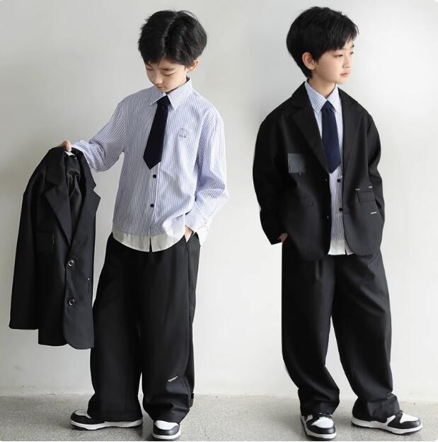2点&4点セット選択可 ジャケット+縦 キッズ スーツ カジュアルセットアップ スーツ 早い者勝ち!ポイントUP 120 130 140 150 160 170 180 ジャケット+パンツ 4点セット