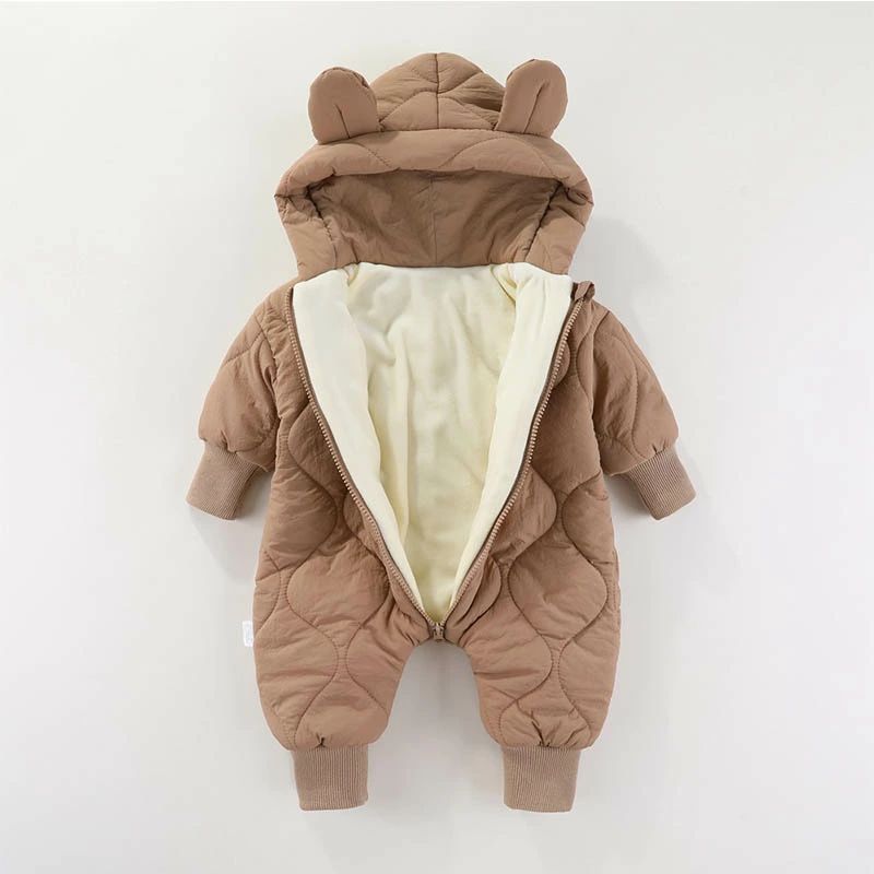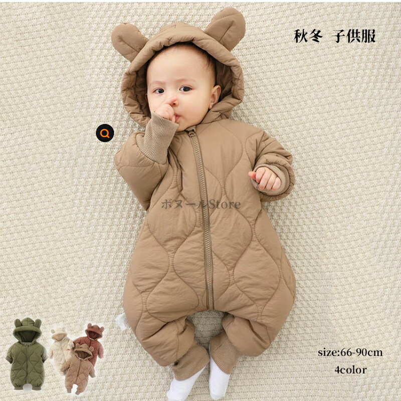 ジャンプスーツ ベビー カバーオール 耳付き くま耳 フード付き 中綿 裏ボア 裹起毛 アウター ロンパース 女の子 男の子 ベビー服 新生児 子供服 キッズ 長袖 出産祝い 撥水 防水 防寒 雪遊び