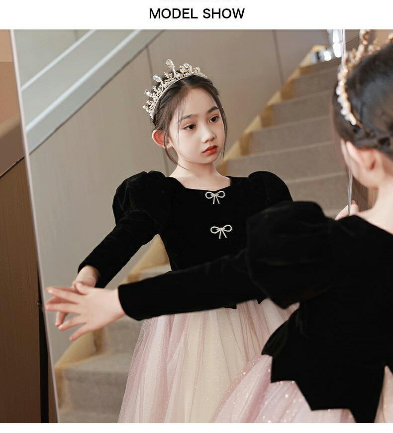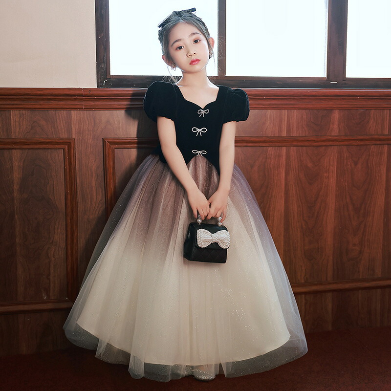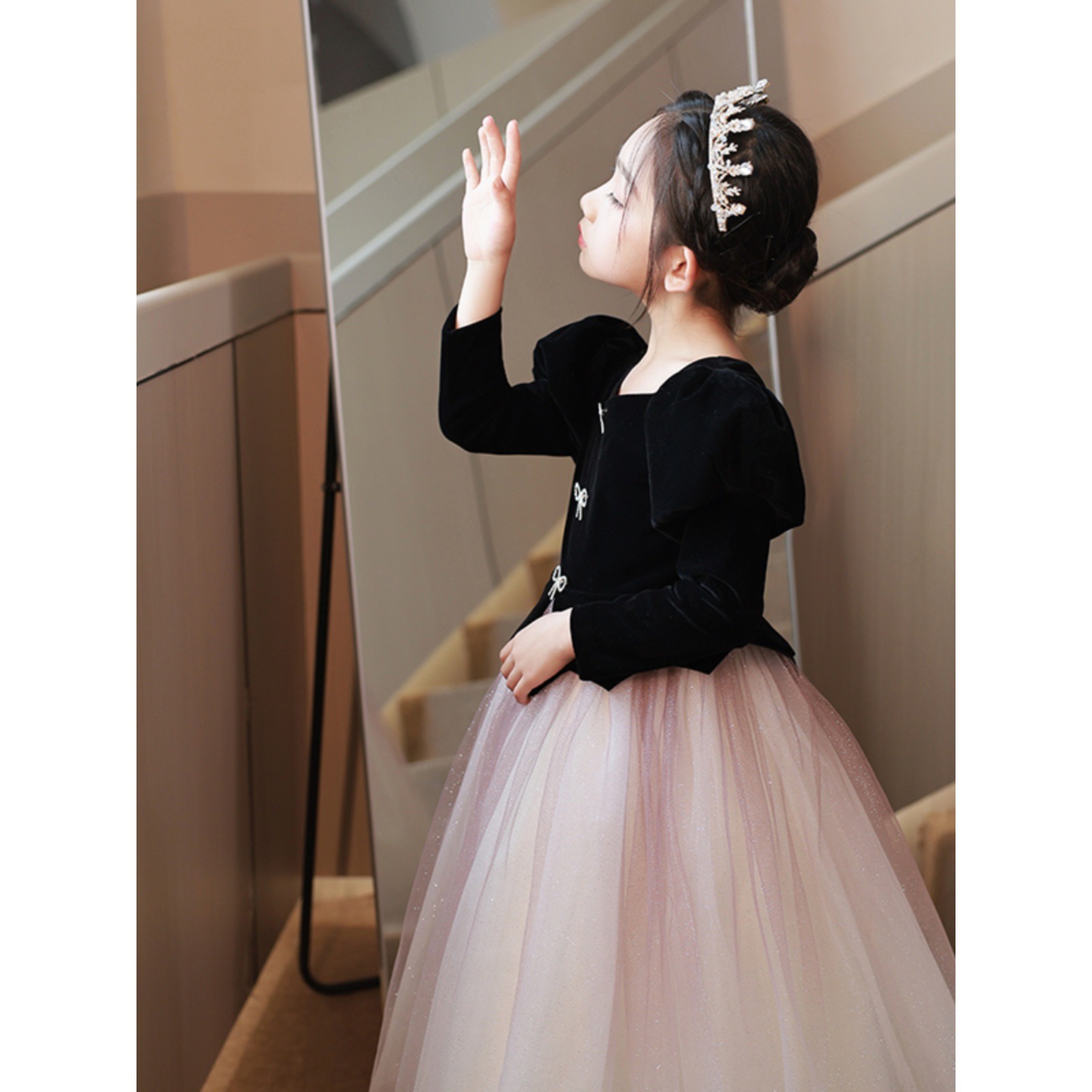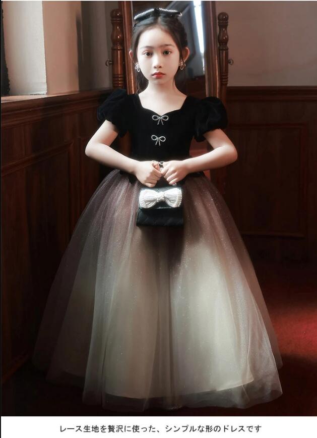 [上品な子供ドレス]ピアノの発表会にぴったりな、上品さと高級感を兼ね備えたレディライクな一着!女の子フォーマルお姫様ロングドレス♪