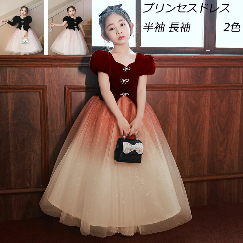 2色 子供 ドレス ロング 150 ピ キッズ ドレス 期間限定ポイントUP! 100 110 120 130 140 150 160 黒(半袖) 黒(長袖) 赤