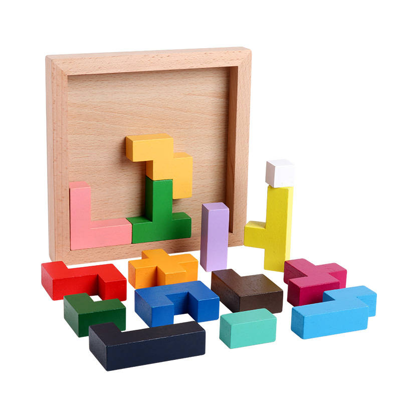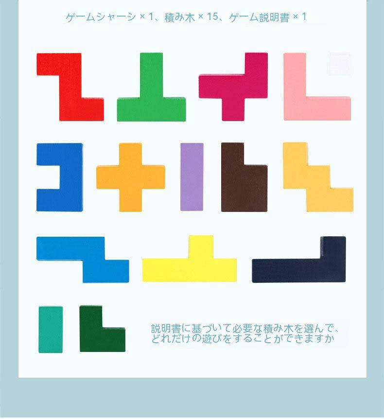 木製ブロックパズル テトリス パズル 3歳 知育パズル 教育玩具 子供 15ピースおもちゃ 知育玩具 学習玩具 おもちゃ