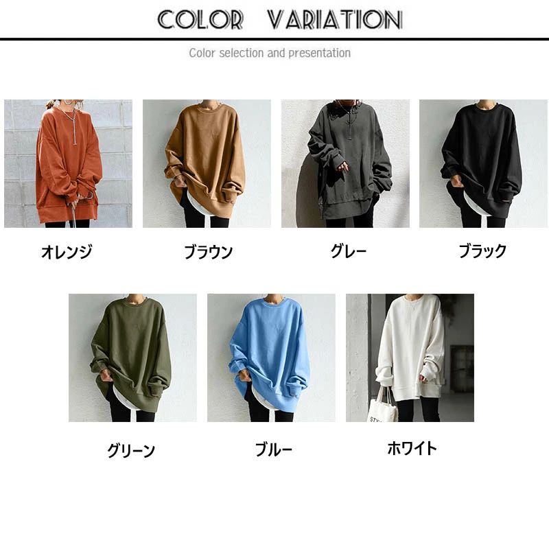 トレーナー レディース 長袖 カットソ トップス スウェット トレーナー 特集 オレンジ ブラウン グレー ブラック グリーン ブルー ホワイト S M L XL 2XL 3XL 4XL 5XL