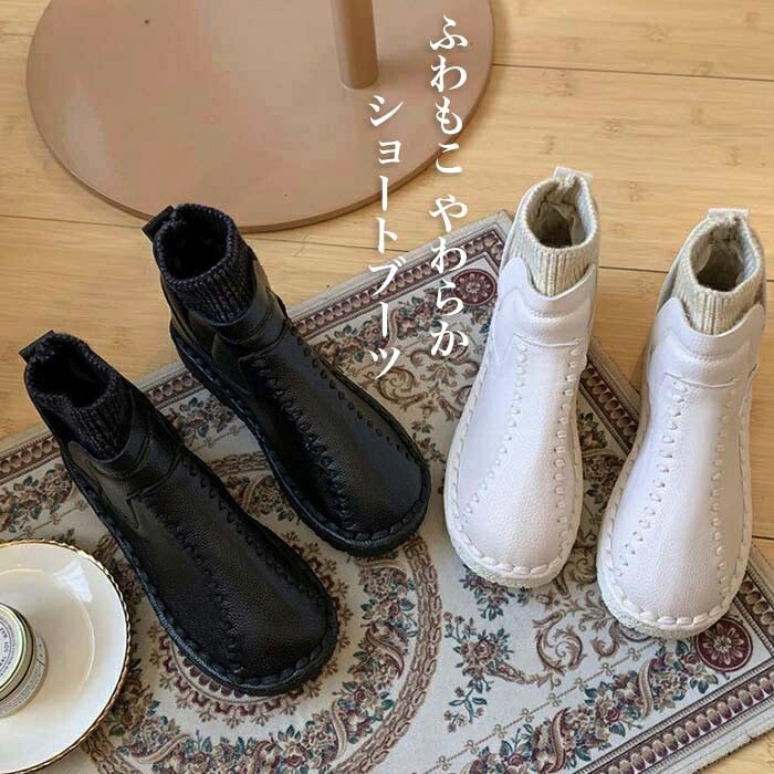 ふんわりもこもこショートブーツ 柔らか レディース靴 ブーツ その他 通販 35【22.5cm】 36【23cm】 37【23.5cm】 38【24cm】 39【24.5cm】 ブラック ベージュ