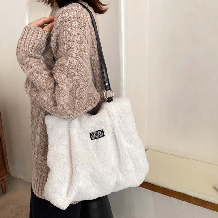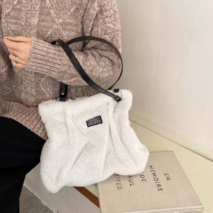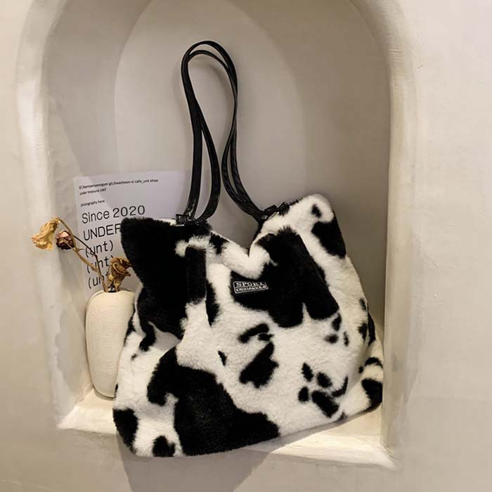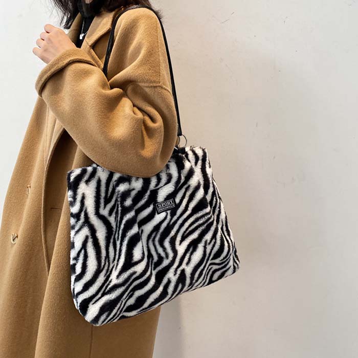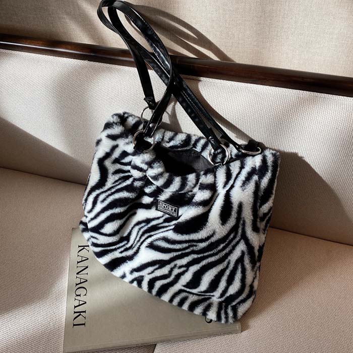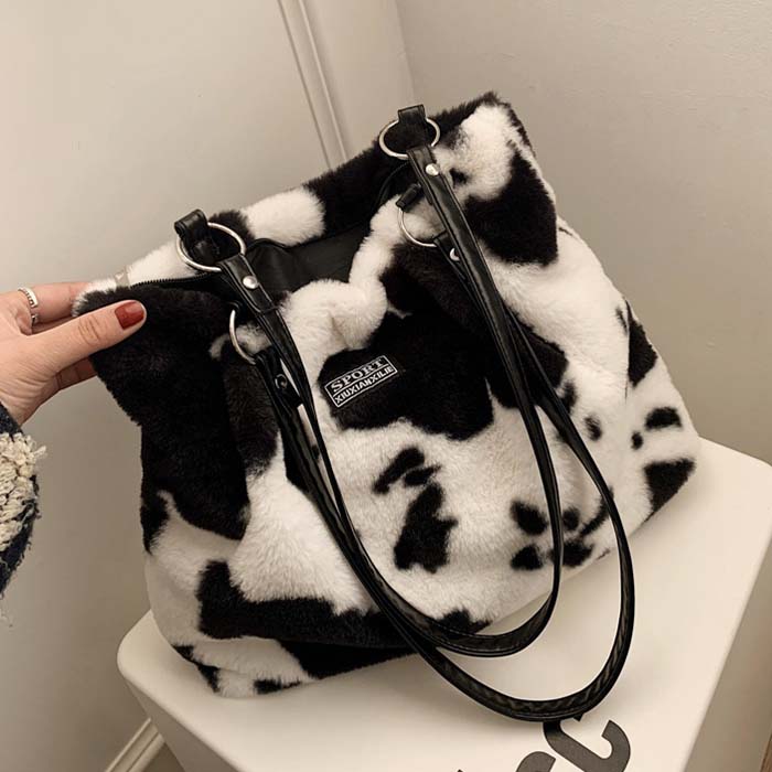 ショルダーバッグ ふわふわ もこもこ バッグ レディースバッグ ハンドバッグ 通販 牛柄 ゼブラ ホワイト