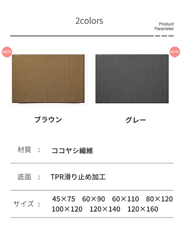 高評価 玄関 マット 麻ココヤシマット ブラウン グレー 45×75cm 60×90cm 60×110cm 80×120cm 100×120cm 120×140cm 120×160cm