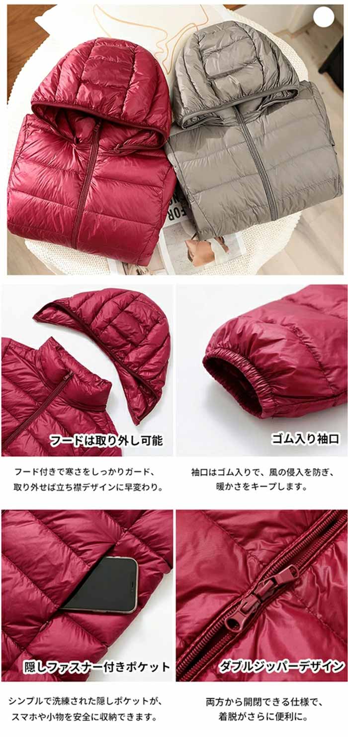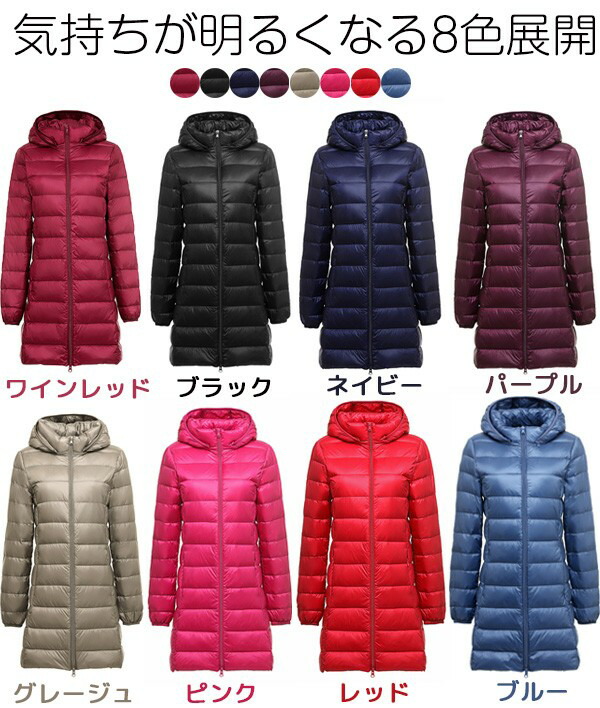ライトダウンジャケット レディース ロ コート ジャケット 早い者勝ち ブラック グレージュ レッド ピンク ブルー パープル ネイビー ワインレッド M L 2L(XL) 3L(2XL) 4L(3XL) 5L(4XL) 6L(5XL) 7L(6XL) 8L(7XL)