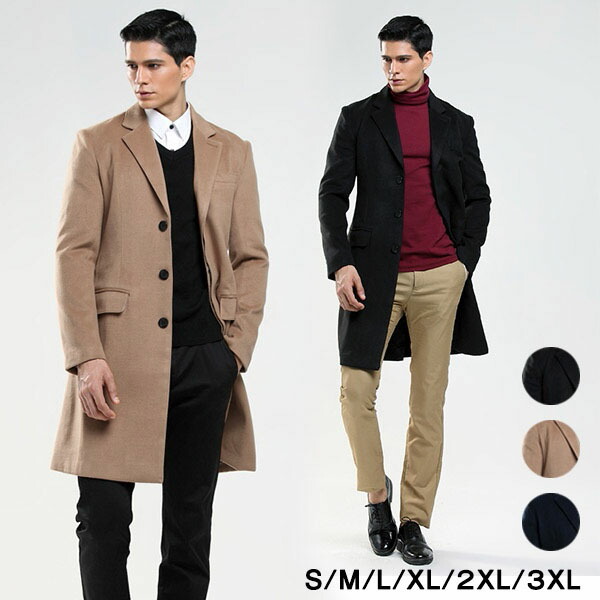 チェスターコート メンズ アウター 3 コート ジャケット 続々入荷中 ブラック ネイビー キャメル S M L LL(XL) 3L(2XL) 4L(3XL)