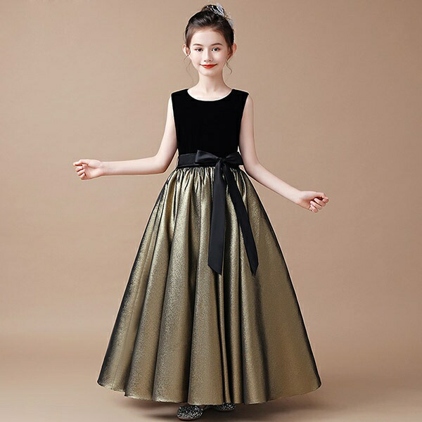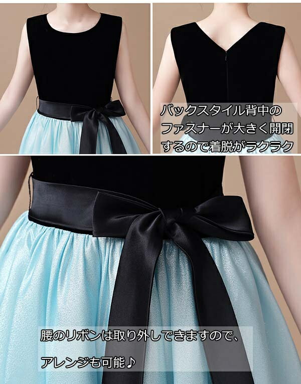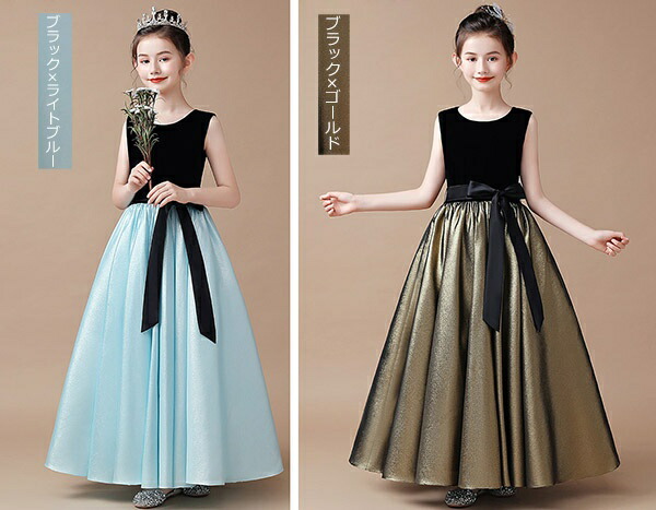 ピアノ発表会 ドレス 中学生 ワンピー キッズ ドレス 早い者勝ち 110cm 120cm 130cm 140cm 150cm 160cm ブラック×ゴールド ブラック×ライトブルー