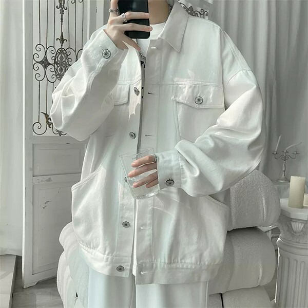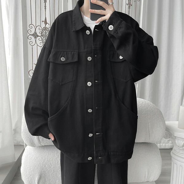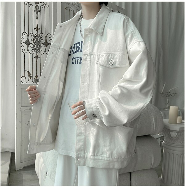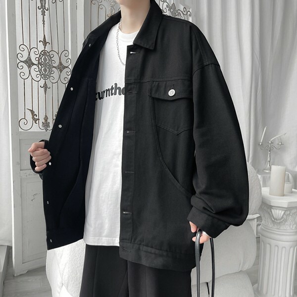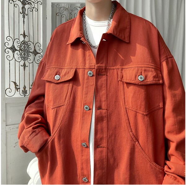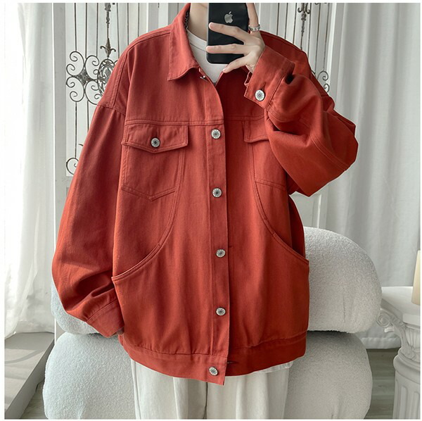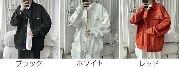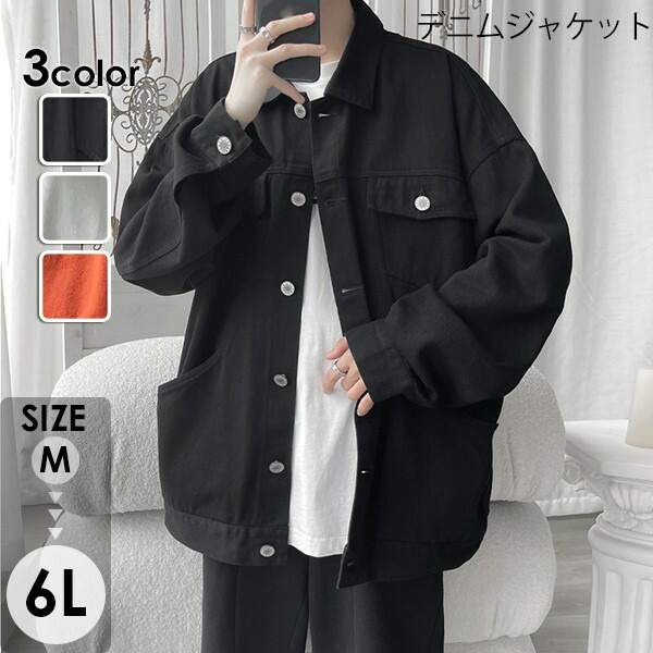 デニムジャケット 折り襟 前ボタン 春 コート ジャケット 早い者勝ち M L 2L(XL) 3L(2XL) 4L(3XL) 5L(4XL) 6L(5XL) ブラック ホワイト レッド