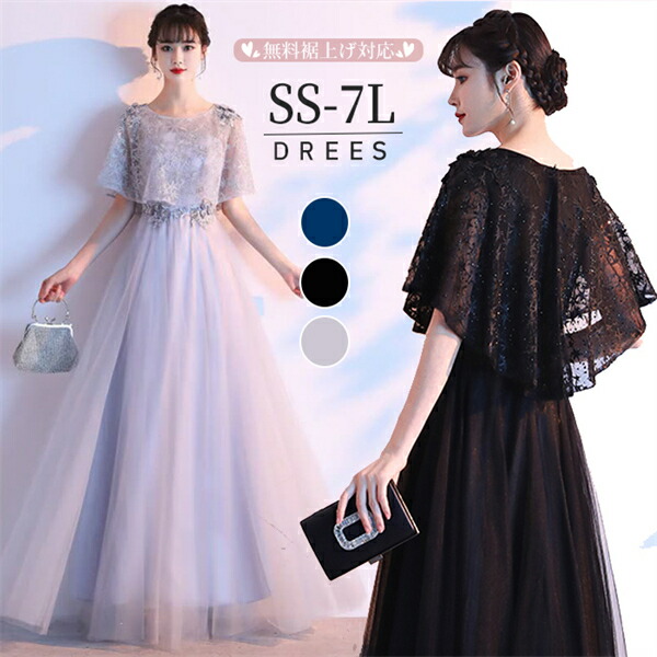 パーティードレス ロングドレス レディ ドレス 超目玉商品 ネイビー グレー ブラック SS S M L 2L(XL) 3L(2XL) 4L(3XL) 5L(4XL) 6L(5XL) 7L(6XL)