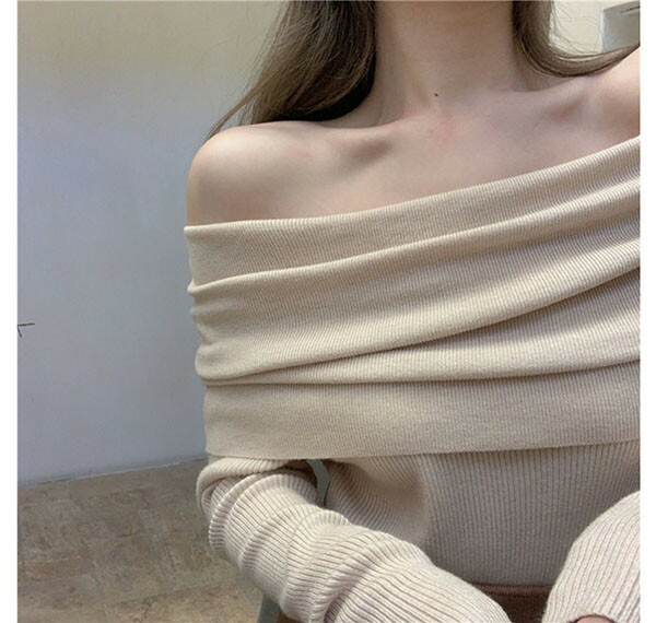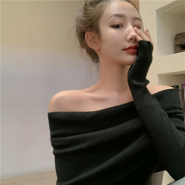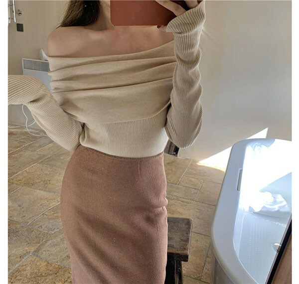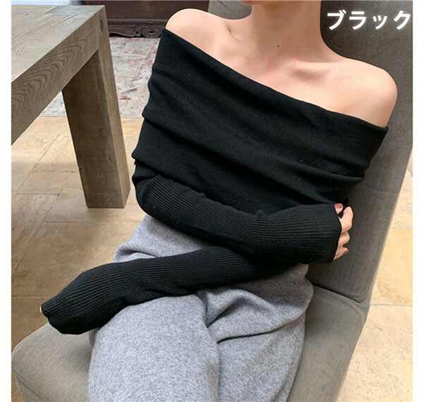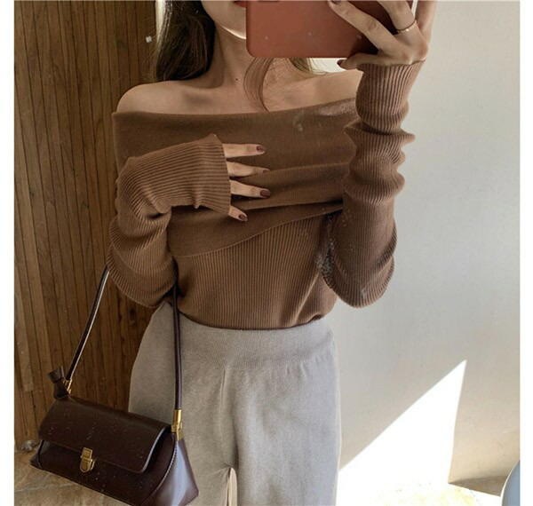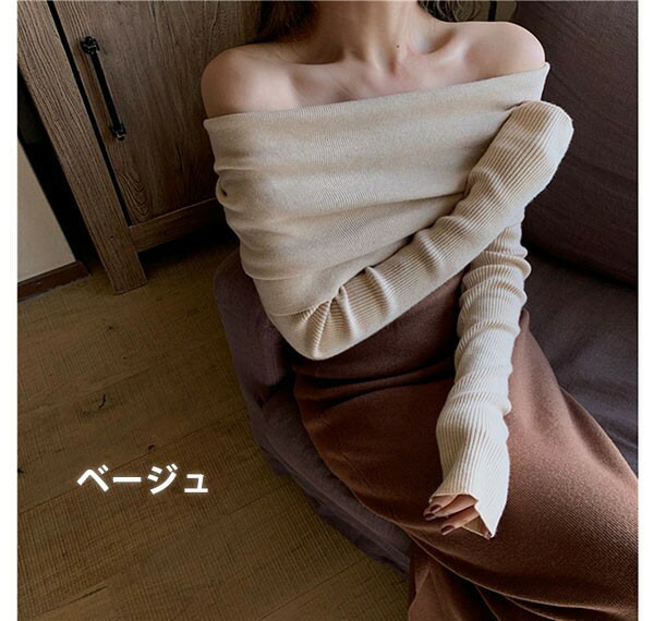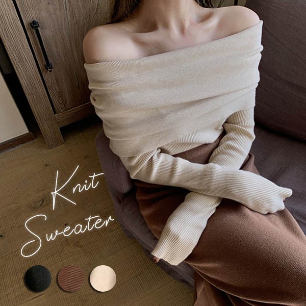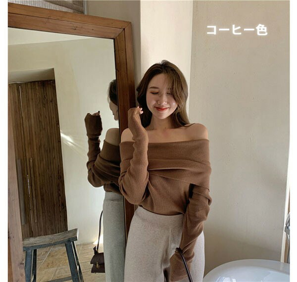 オフショルニット セーター レディース トップス ニット セーター その他 通販 S M L 2L(XL) ブラック コーヒー色 ベージュ