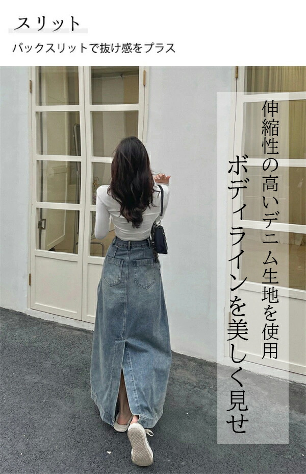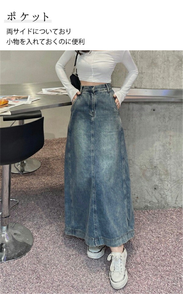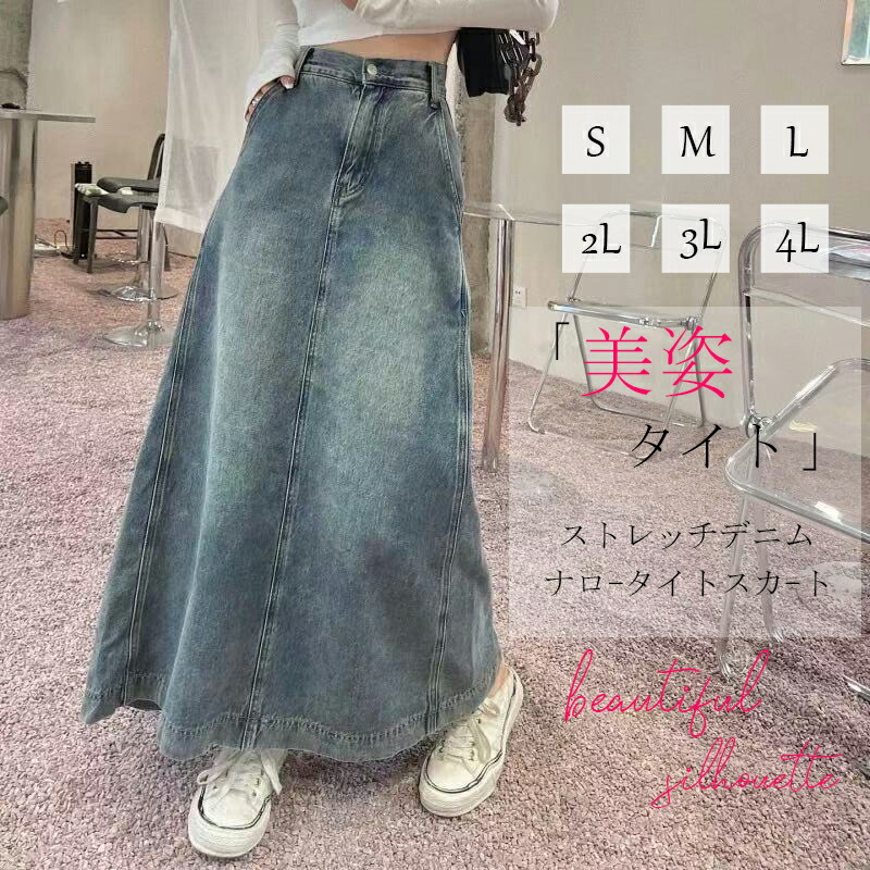 デニムスカート マキシ丈 タイト ロン ボトムス スカート 人気 S M L XL(2L) 2XL(3L) 3XL(4L) 4XL(5L) 5XL(6L)