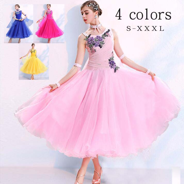 高品質 社交ダンス衣装 社交ダンスドレ 体操 ダンス 社交ダンス ウェア 特集 ライトピンク ダークピンク ネイビー イエロー S M L XL XXL XXXL
