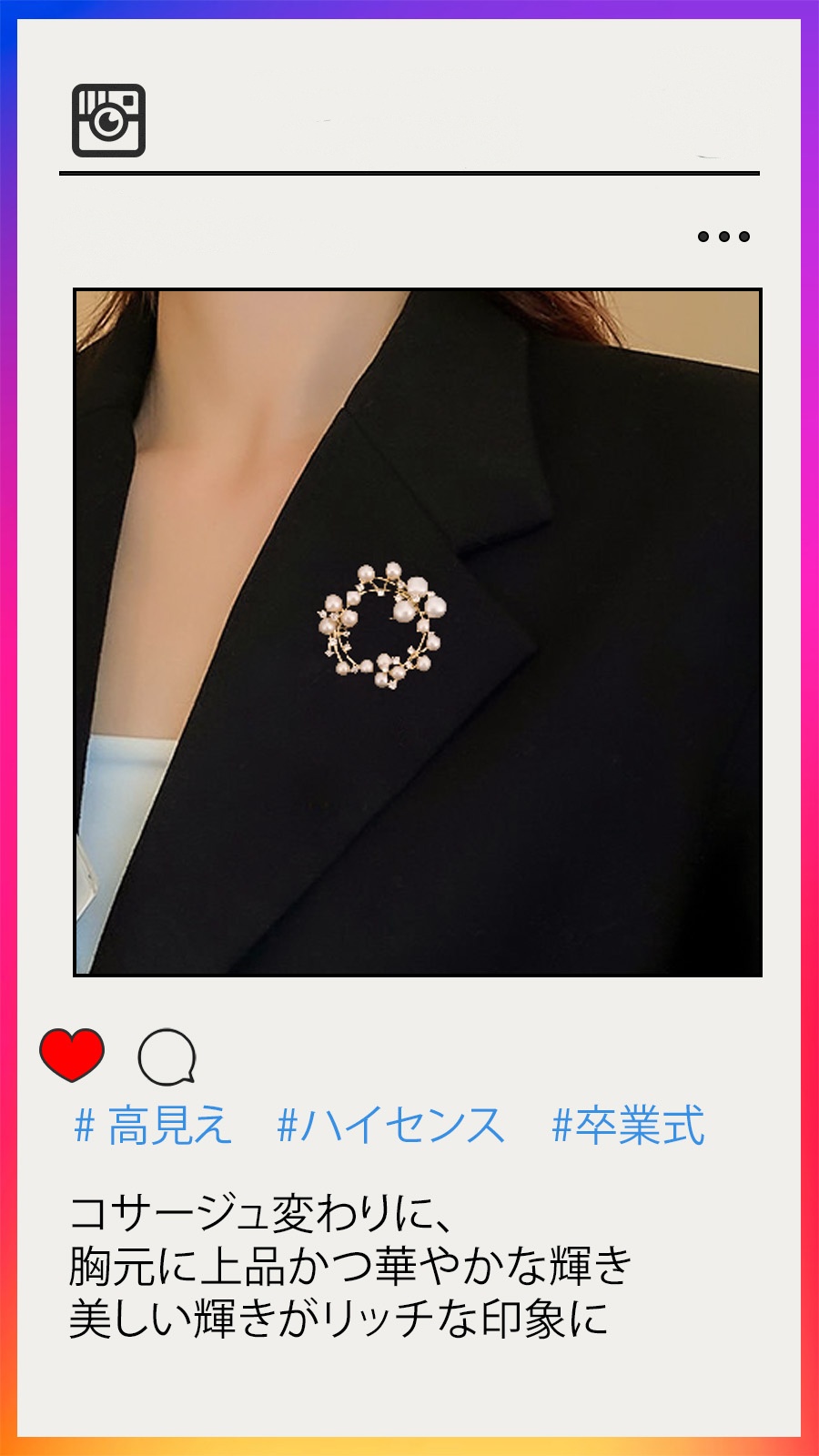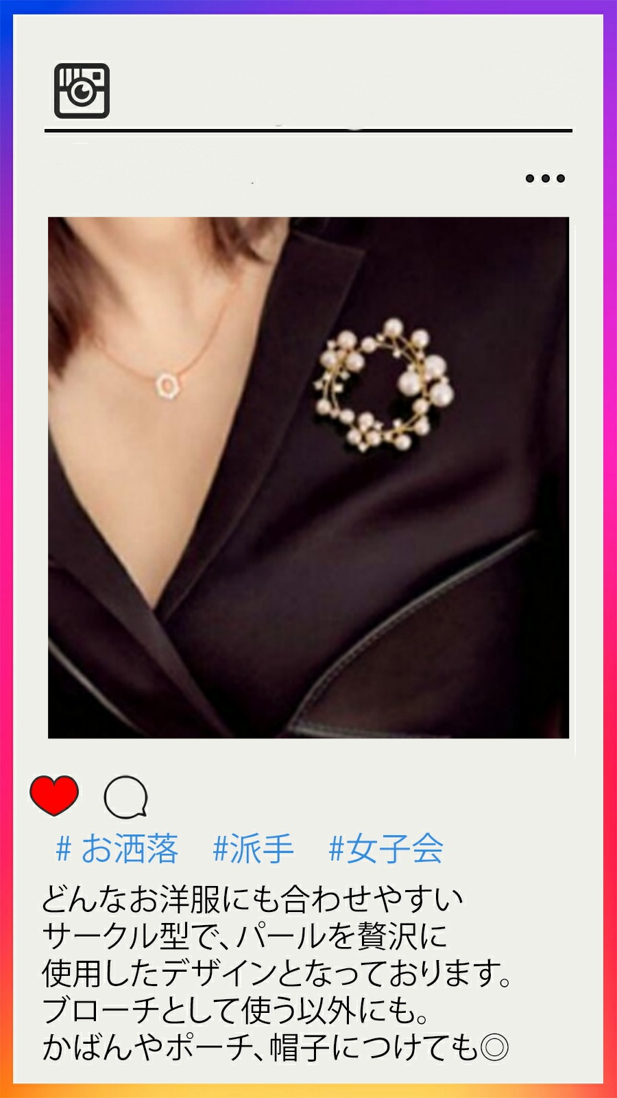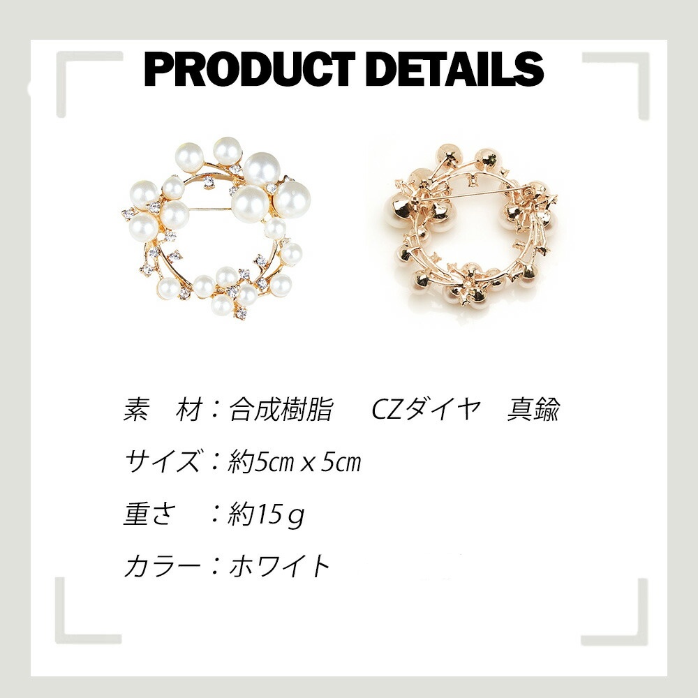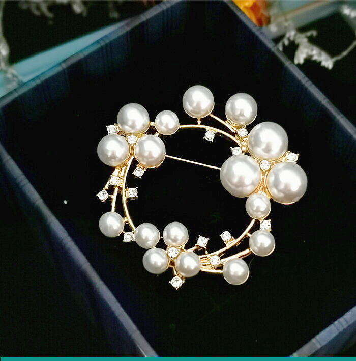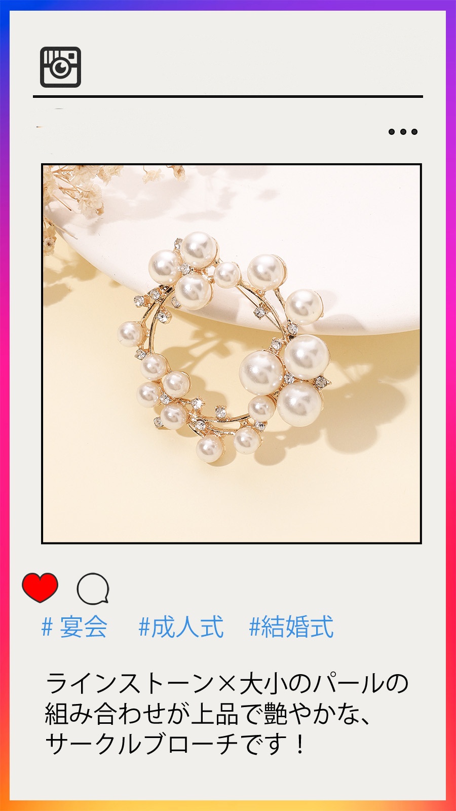 ラインストーンと大小のパールを華やかに組み合わせた、上品なサークルブローチです。