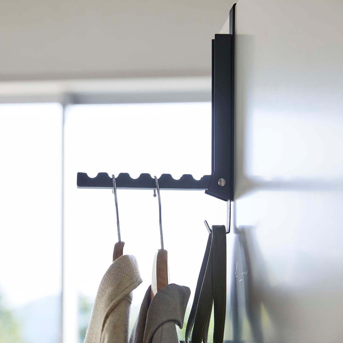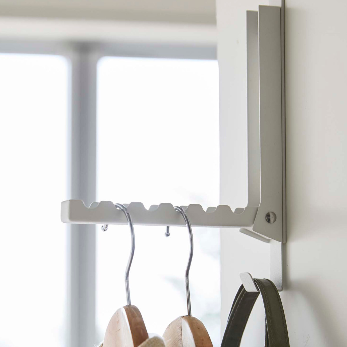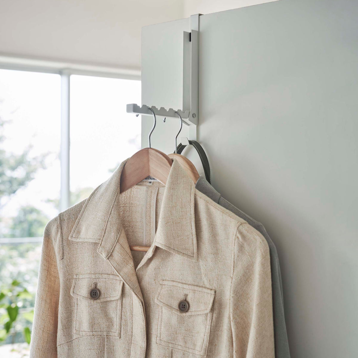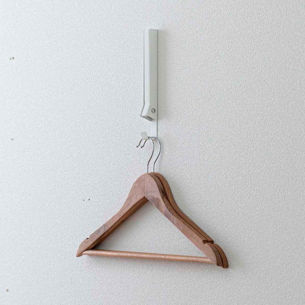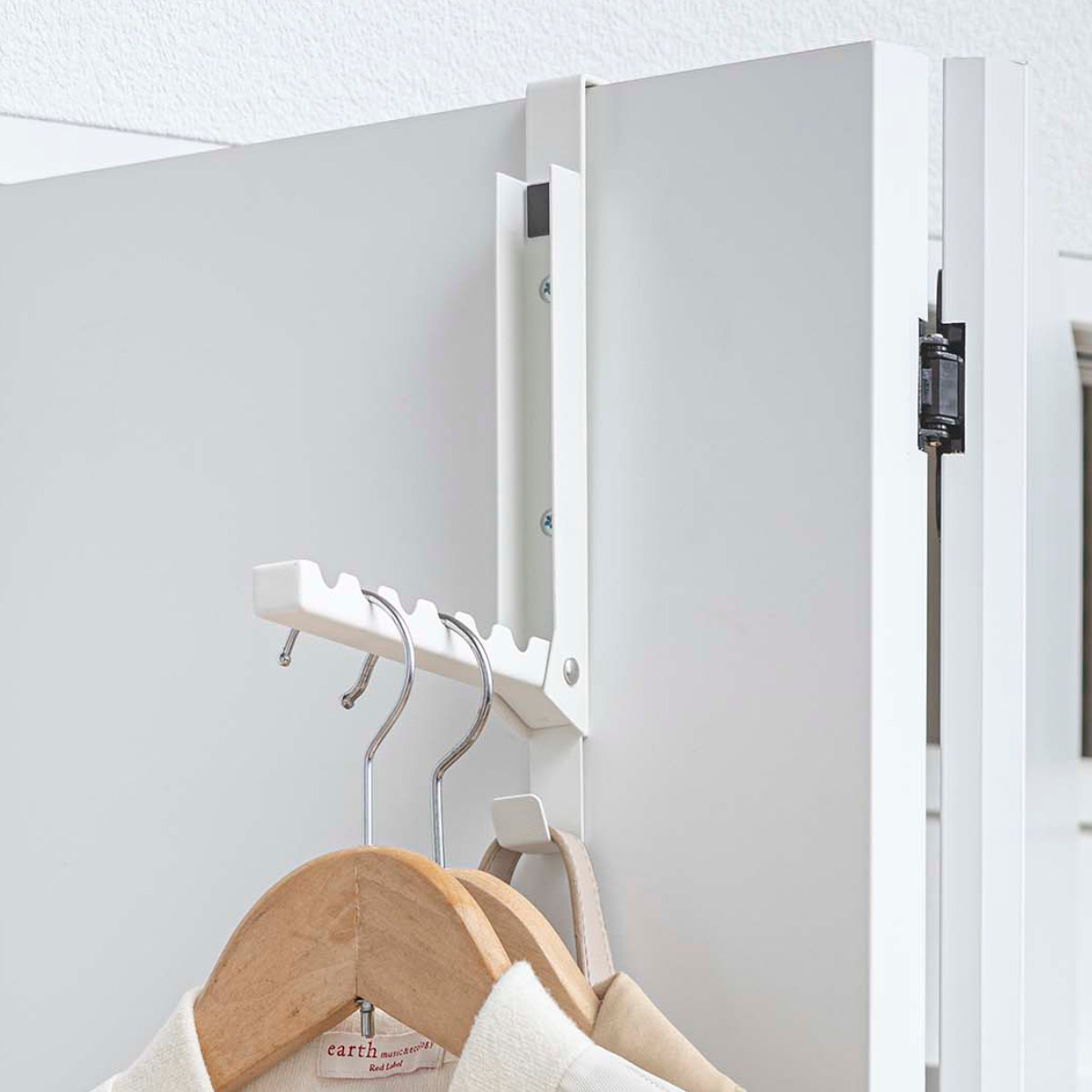 クローゼットの折戸やドアに引っ掛けるだけで、コートや上着をスッキリ収納。ドア前のデッドスペースを有効活用できるので、場所を取らずに衣類や小物が掛けられます。
