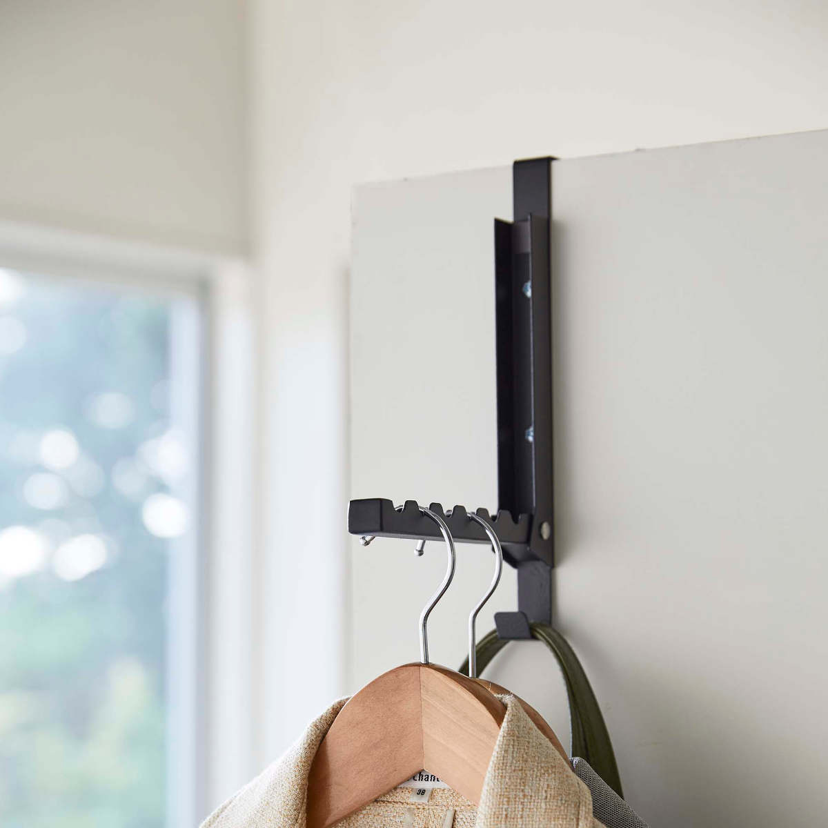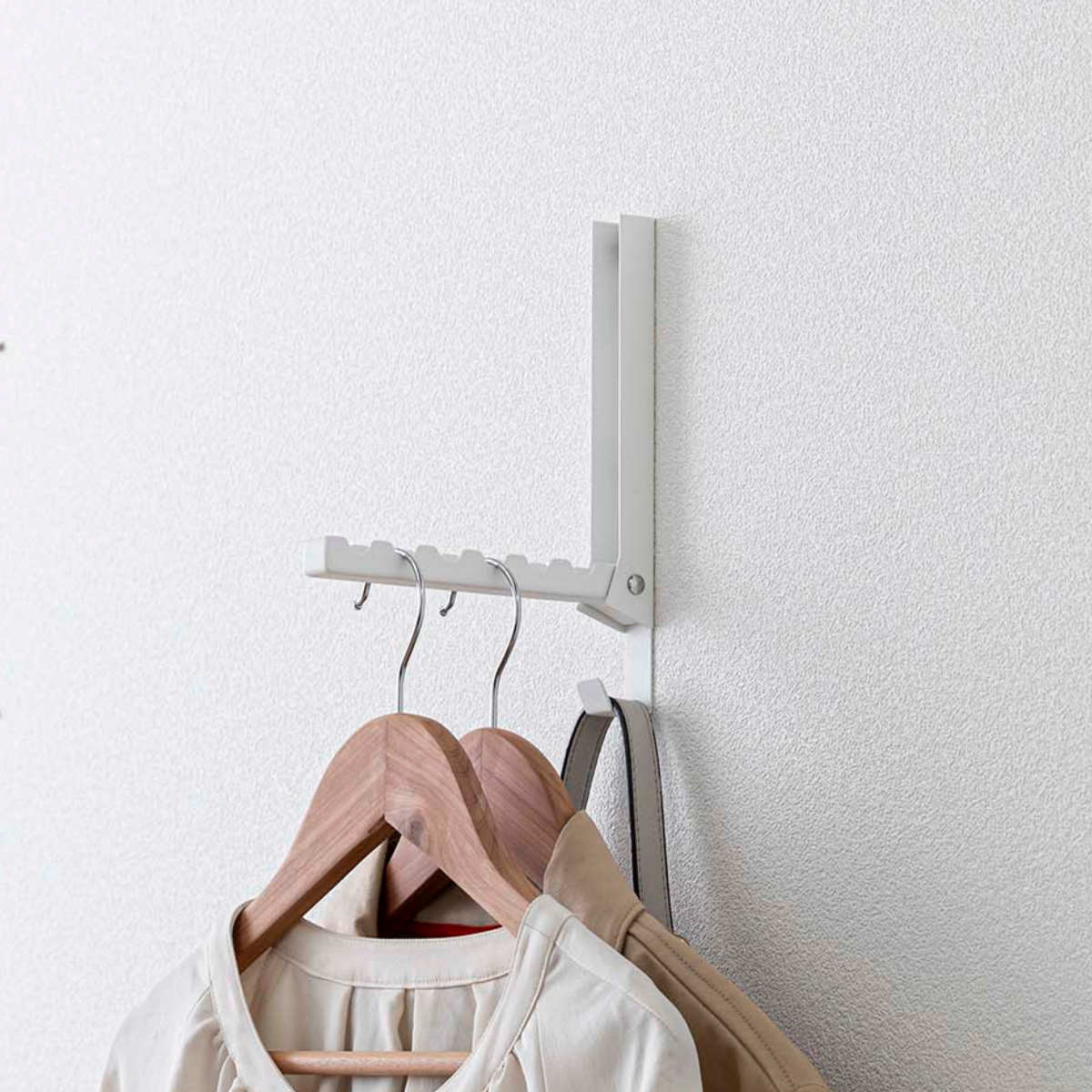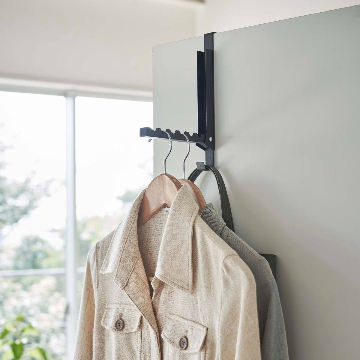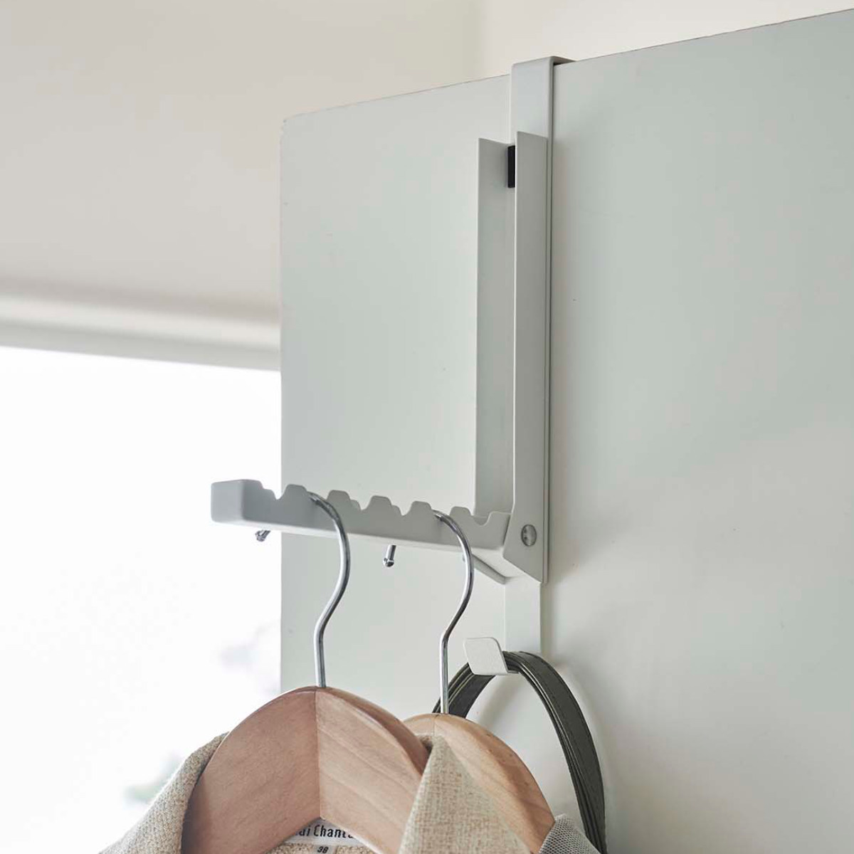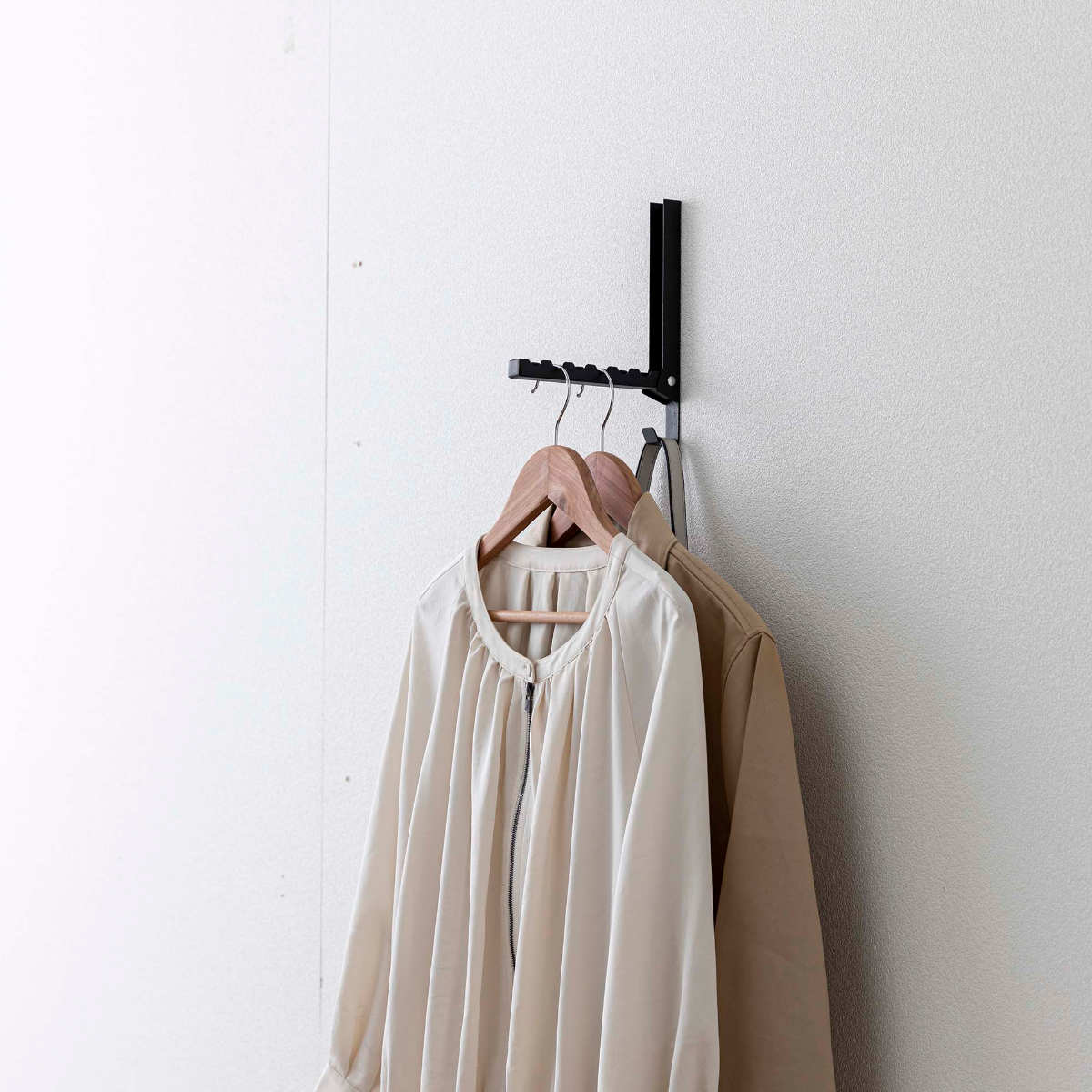 クローゼットの折戸やドアに引っ掛けるだけで、コートや上着をスッキリ収納。ドア前のデッドスペースを有効活用できるので、場所を取らずに衣類や小物が掛けられます。