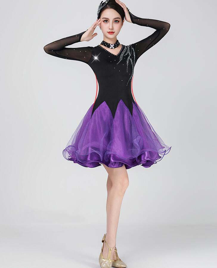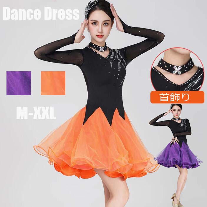 社交ダンス ドレス ルンバ ダンスウェ 体操 ダンス 社交ダンス ウェア 人気 オレンジ パープル M L XL XXL