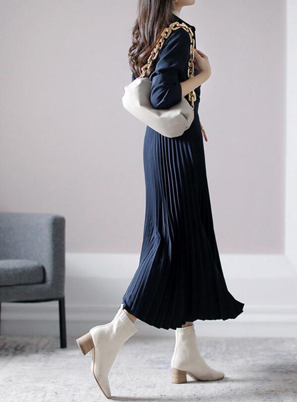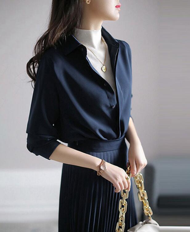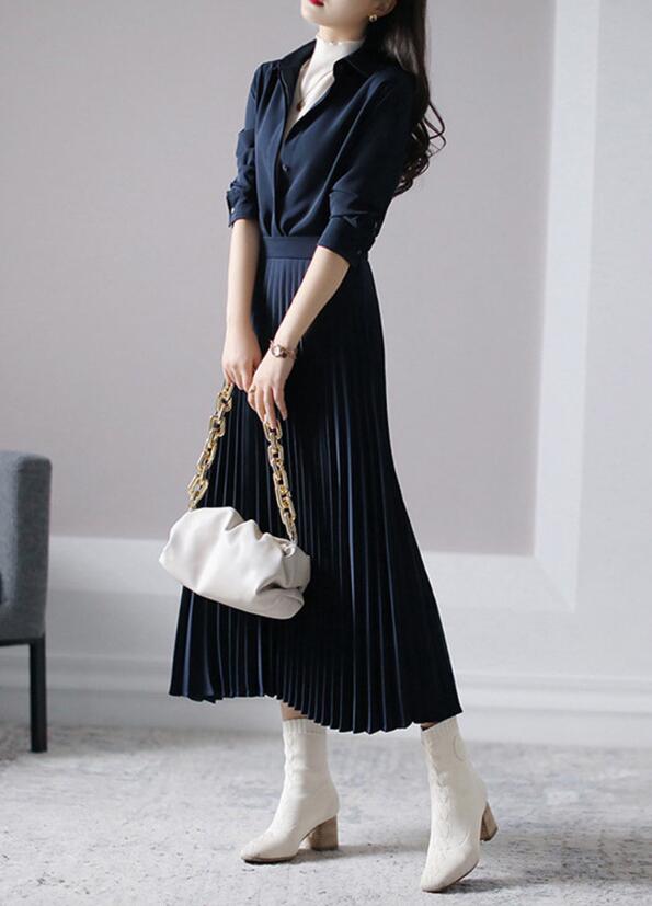 品質良い きれいめ 長袖シャツプリーツ ワンピース 期間限定割引クーポン S M L XL