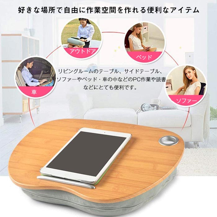 膝上テーブル クッションテーブル テー ブルー グレー パープル 花柄