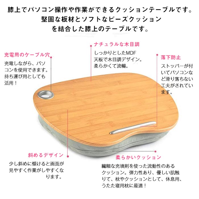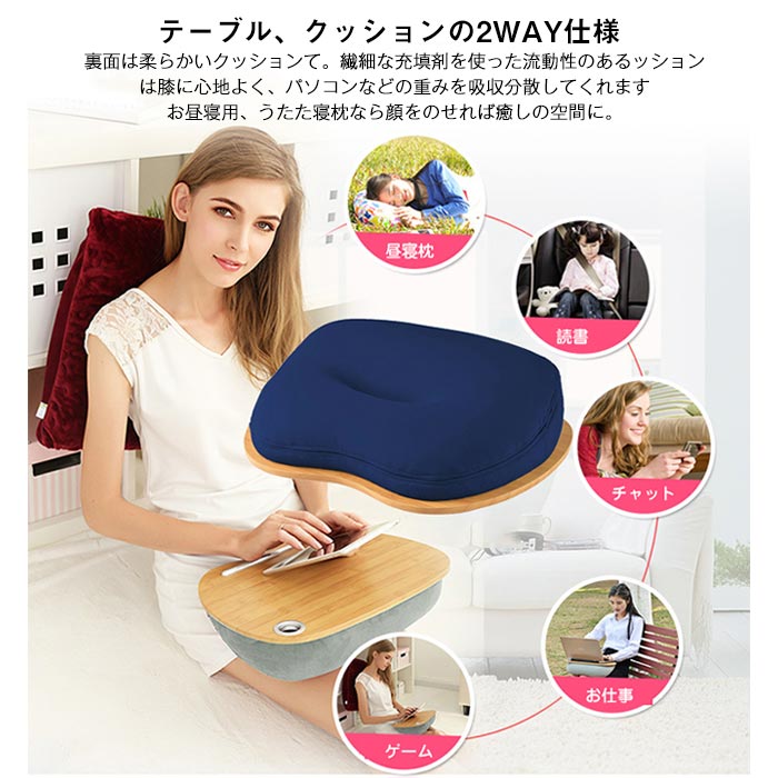 膝上テーブル クッションテーブル テー ブルー グレー パープル 花柄