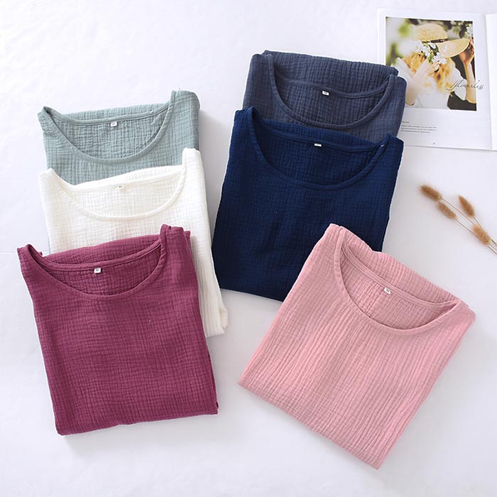 パジャマ ガーゼ 綿100% ルームウ M L XL ピンク グリーン ワインレッド ダークグレー ホワイト ネイビー