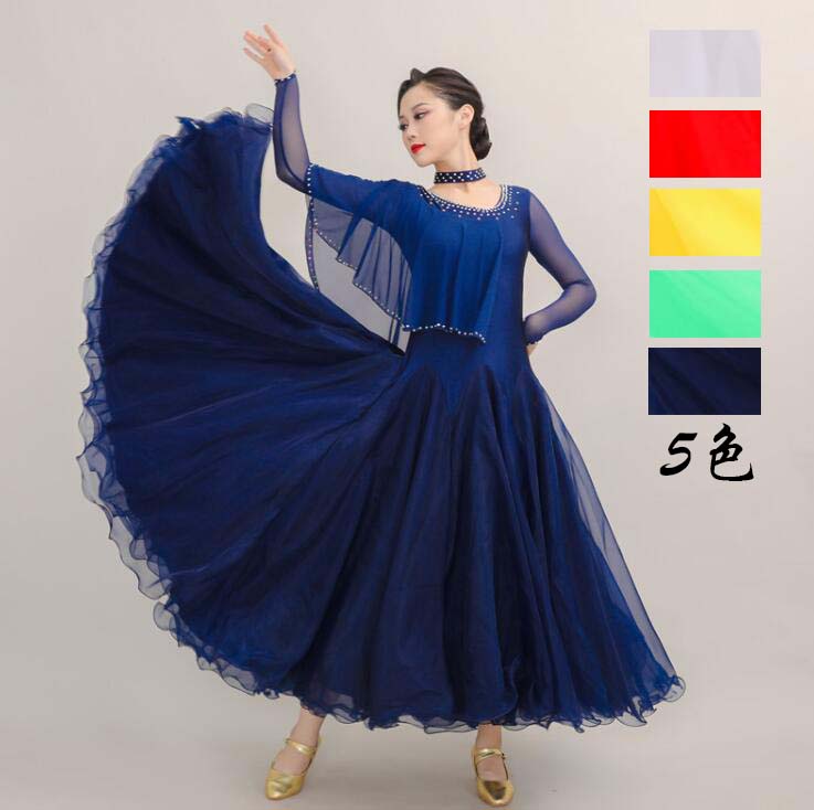 社交ダンス衣装 ゴージャス 社交ダンス 体操 ダンス フラメンコ ワンピース ドレス 豊富 ネイビー ホワイト グリーン イエロー レッド S M L XL XXL XXXL