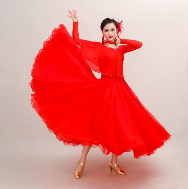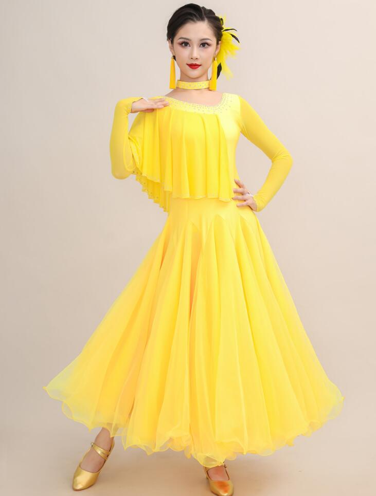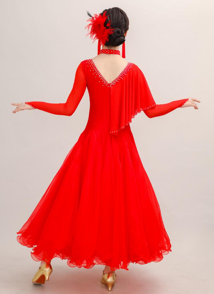 社交ダンス衣装 ゴージャス 社交ダンス ワンピース スタンダードドレス ワルツ モダン衣装 ダンスウェア フラメンコ 競技用のドレス パーティー 着痩せ 高品質 スレンダーモ練習着 大きい ダンドレス