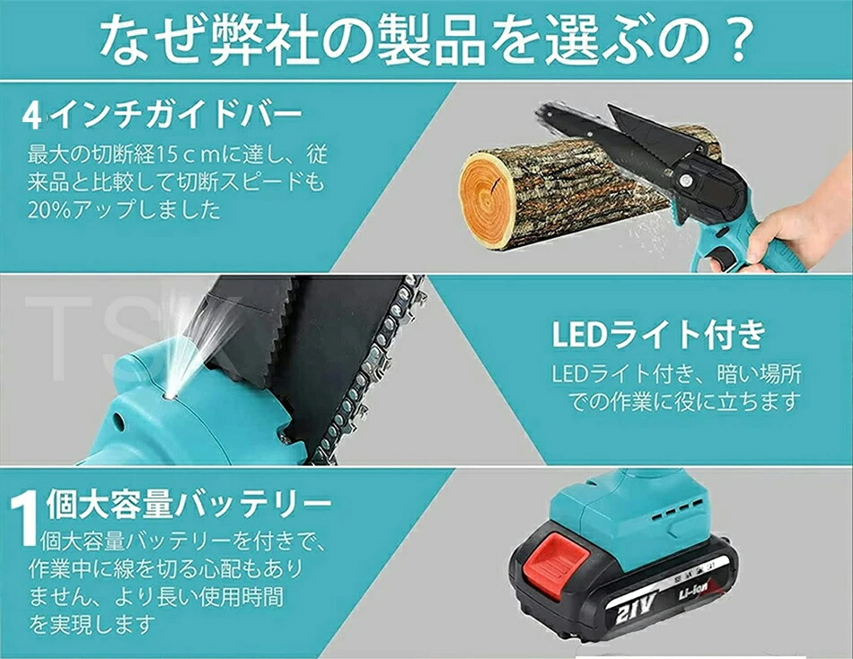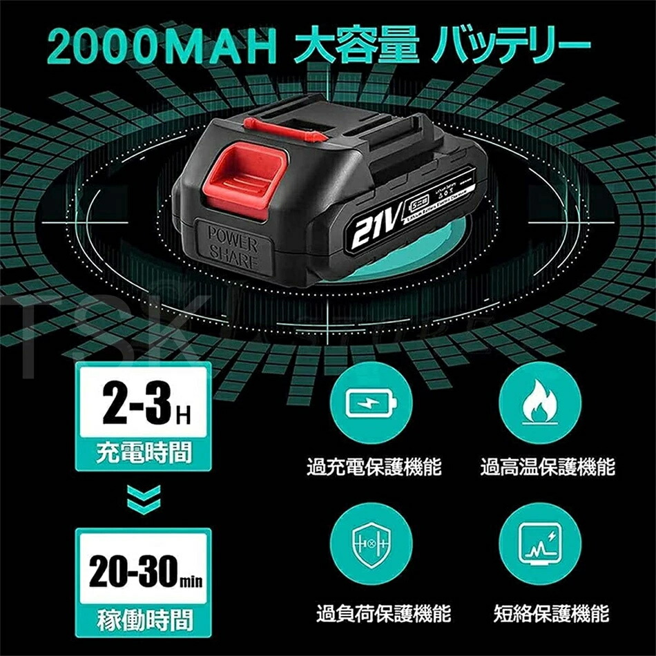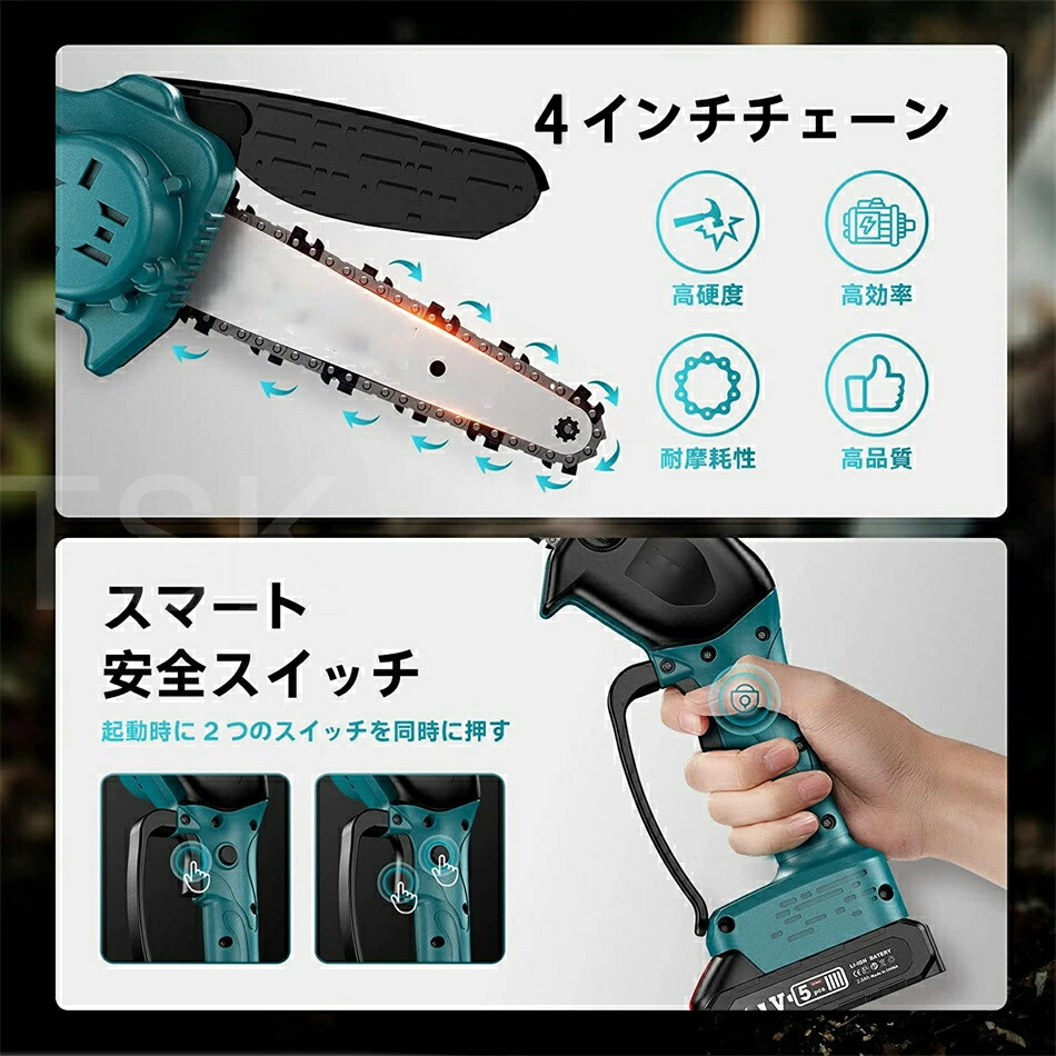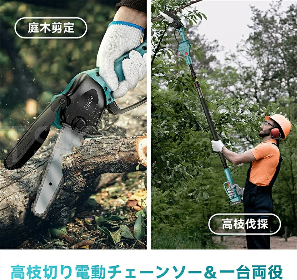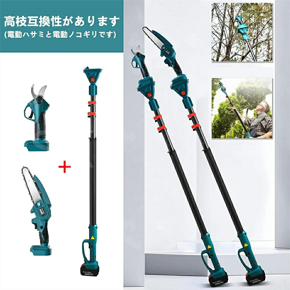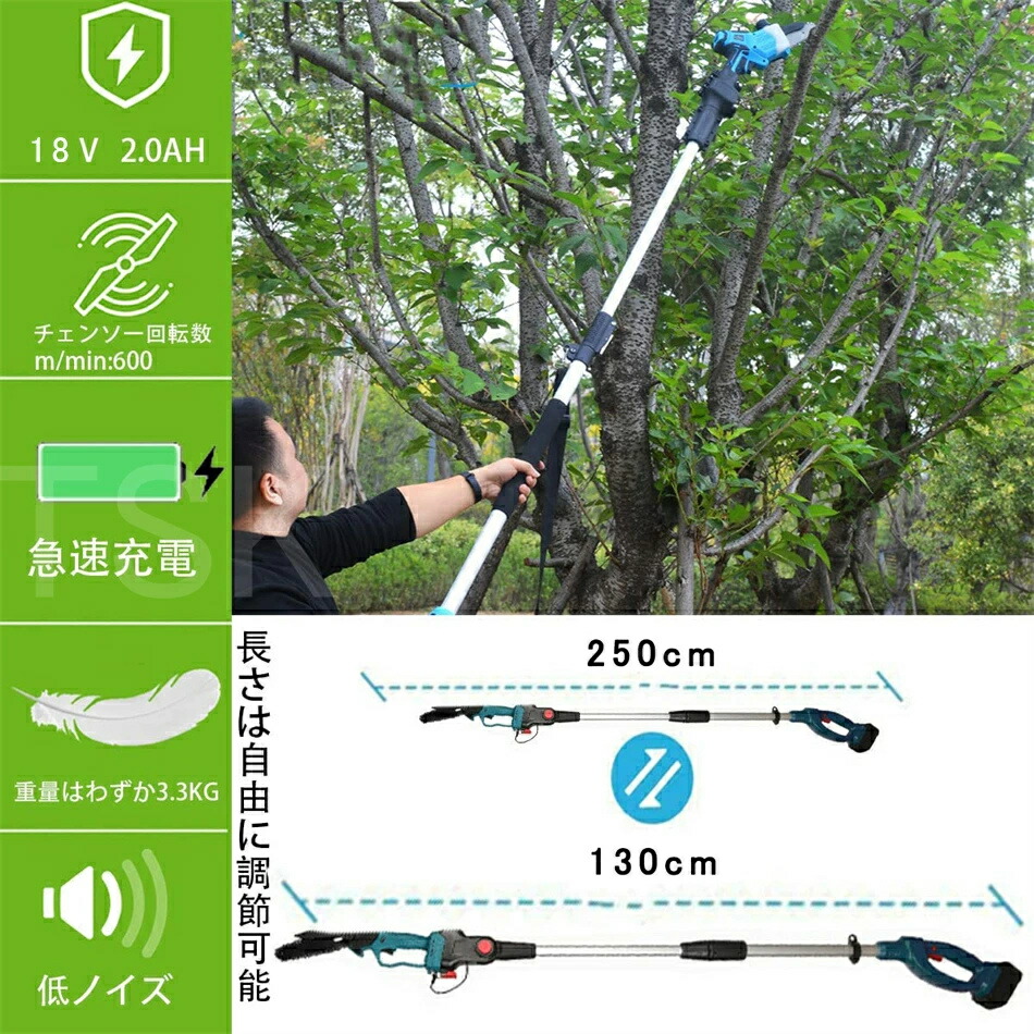 充電式 チェーンソー 高枝切り電動チェ チェンソー本体、アルミ管ない 本体+アルミニウム管 充電器1つ+バッテリ1つ 充電器1つ+バッテリ2つ